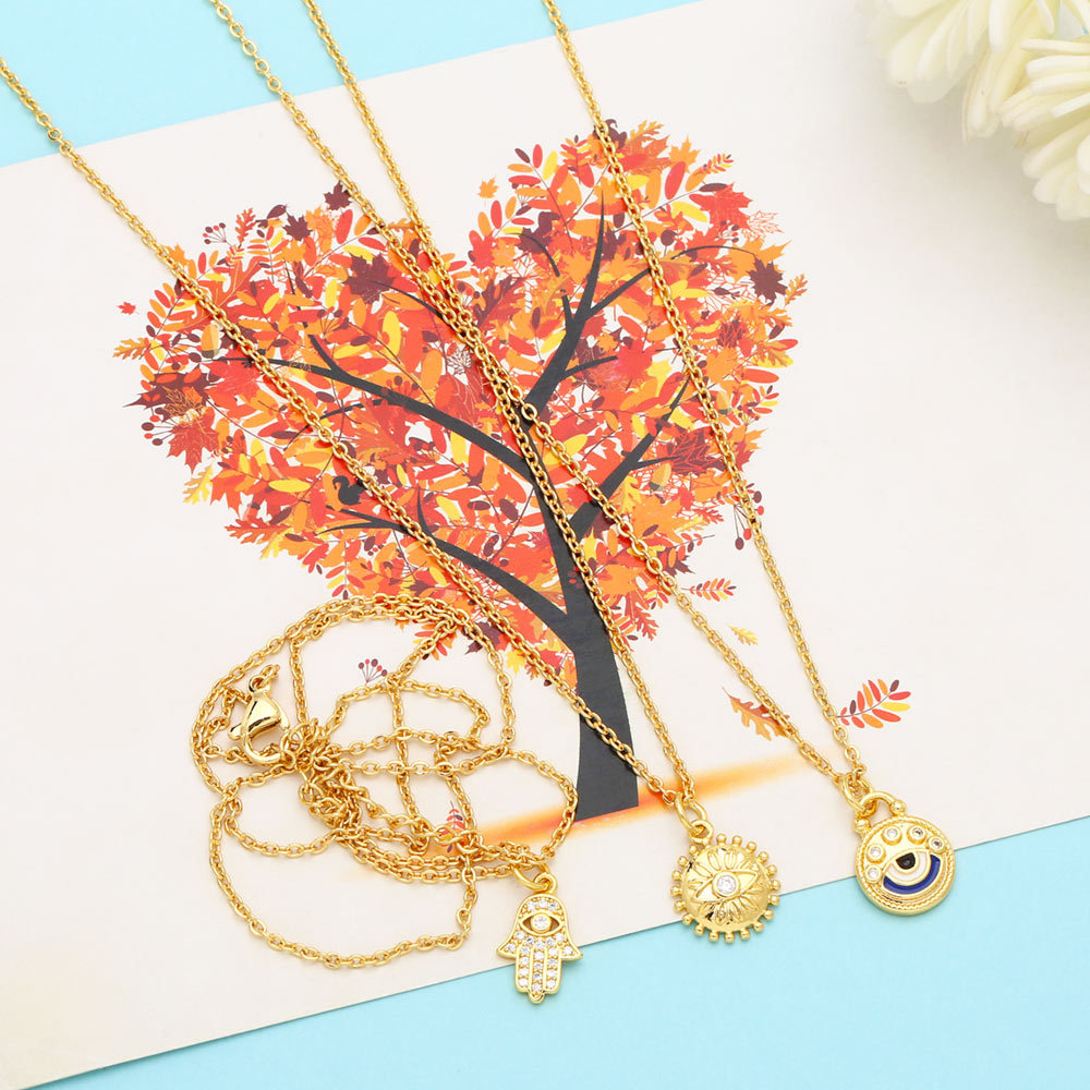 European and American new fashion sweater chain niche design eye pendant diamond plated 18k gold necklace female nkb519