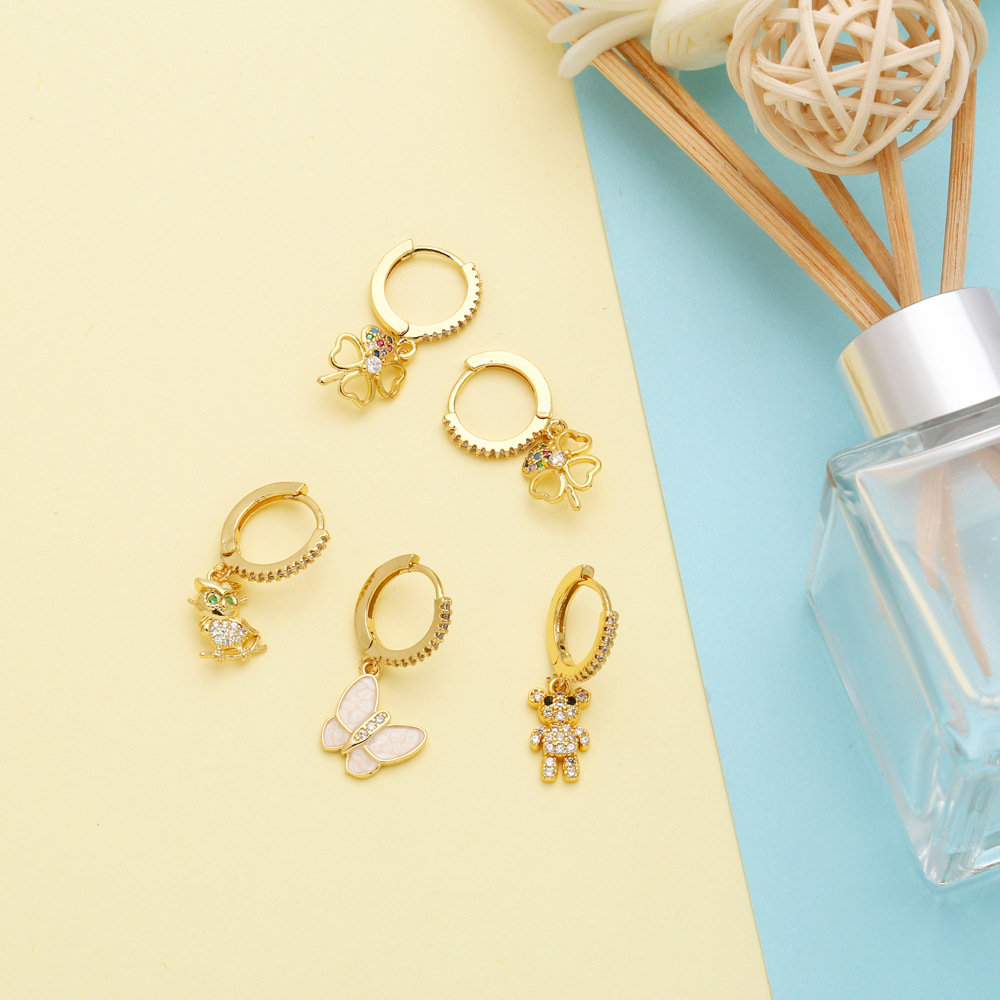 European and American new fashion sweet cute girl butterfly bear earrings simple temperament four-leaf clover earrings ers36