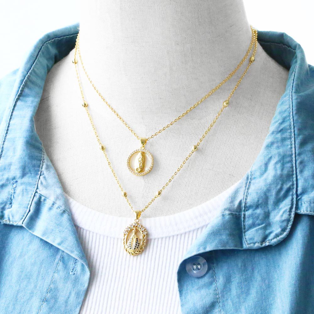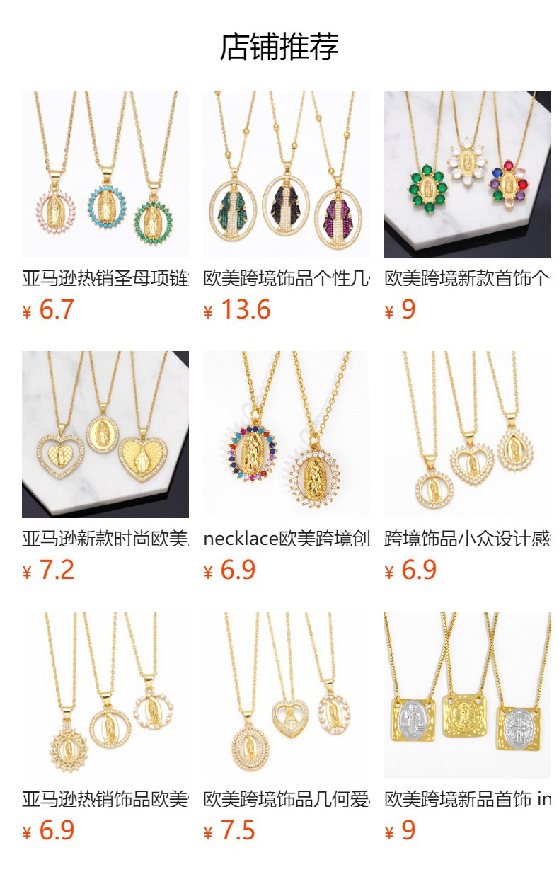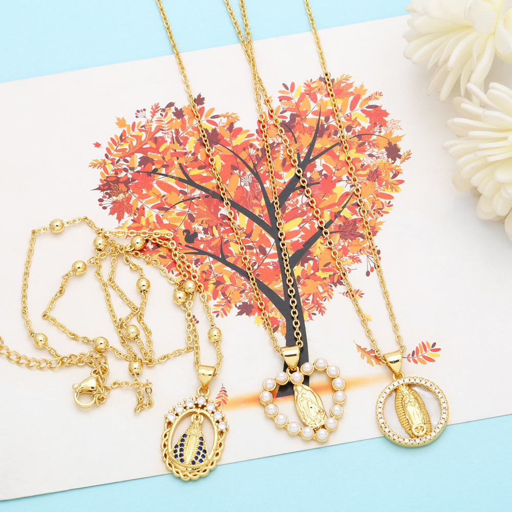 European and American new fashion temperament love-shaped Virgin Mary necklace geometric diamond Our Lady clavicle chain nkn60