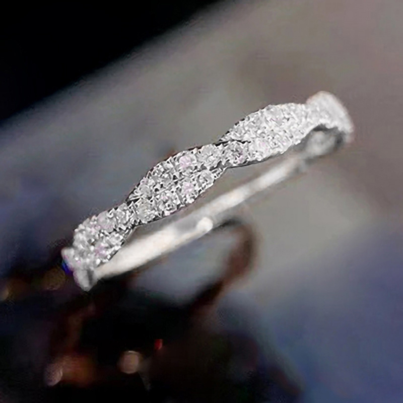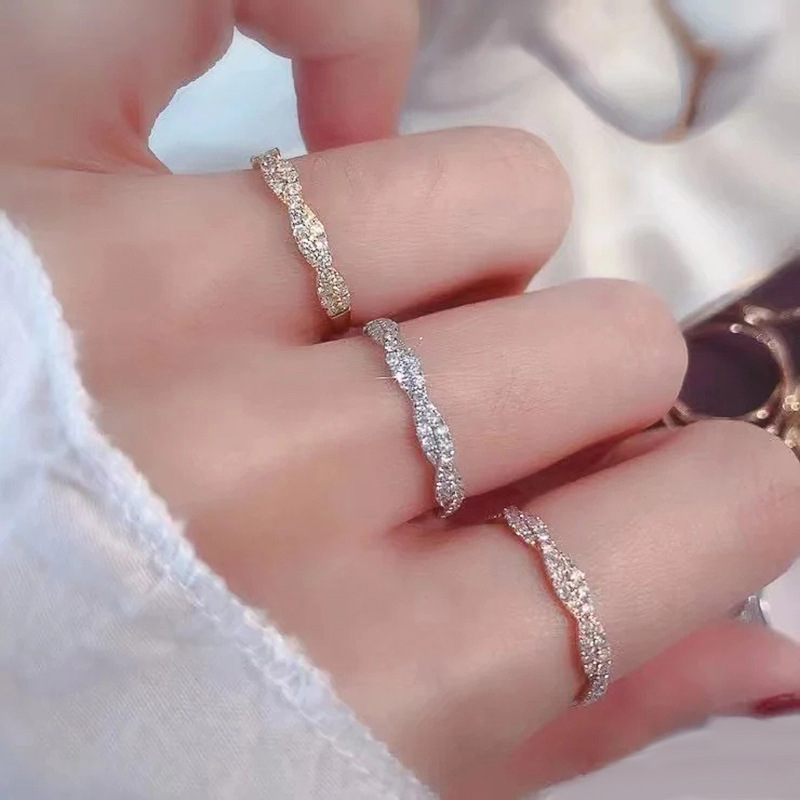 Classic four-claw imitation zircon micro-inlaid ring women's double row two-color twist arm ring engagement wedding ring women