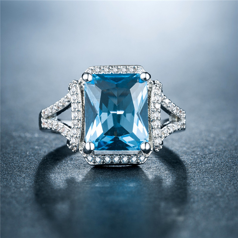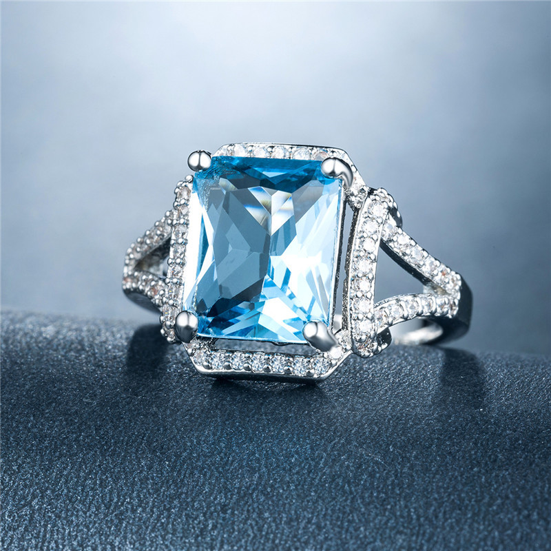 Hot selling new princess square ring European and American hot style inlaid zircon women's jewelry engagement proposal ring