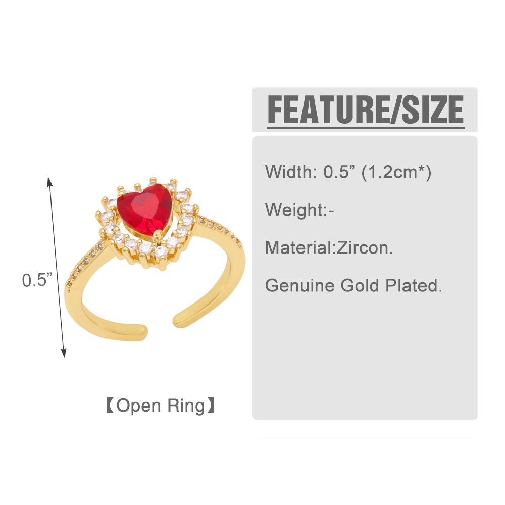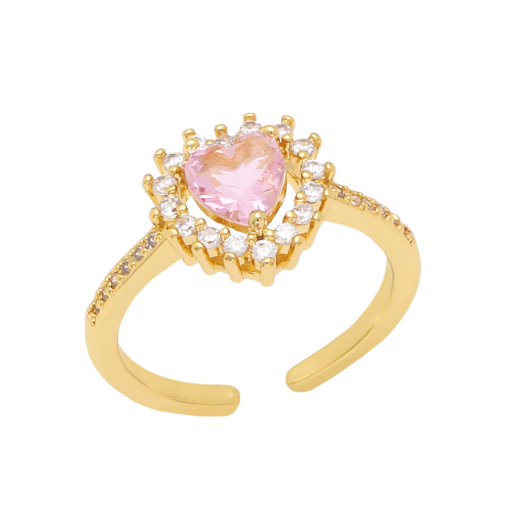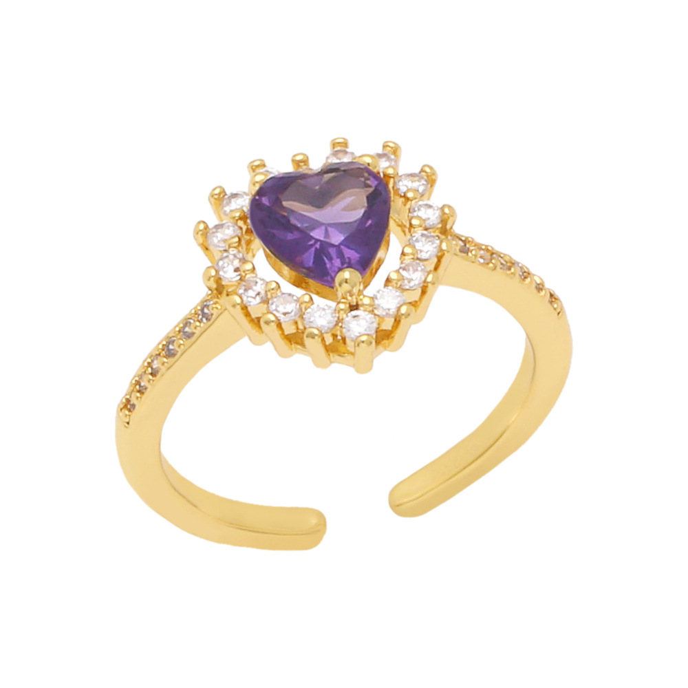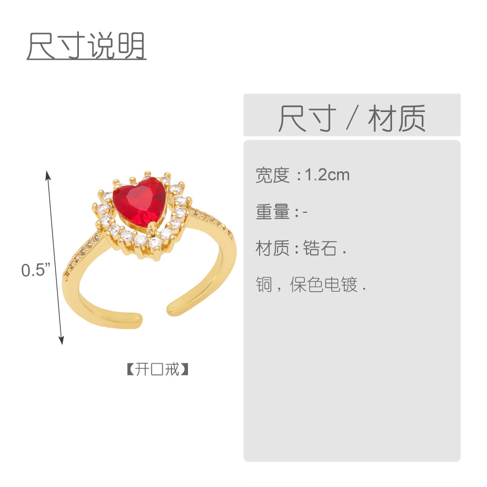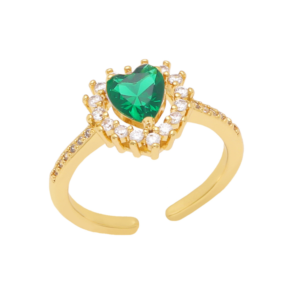 European and American new geometric heart diamond ring retro fashion colorful shiny zircon ring female rip74