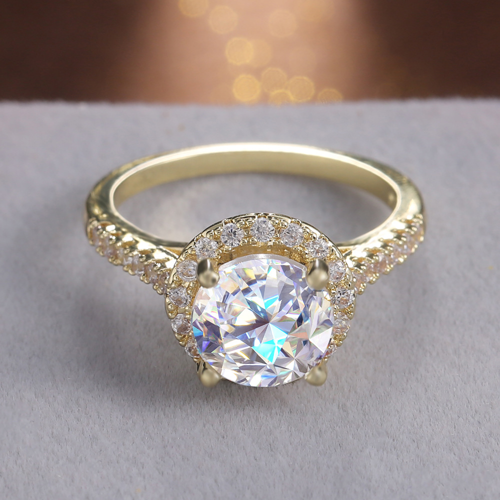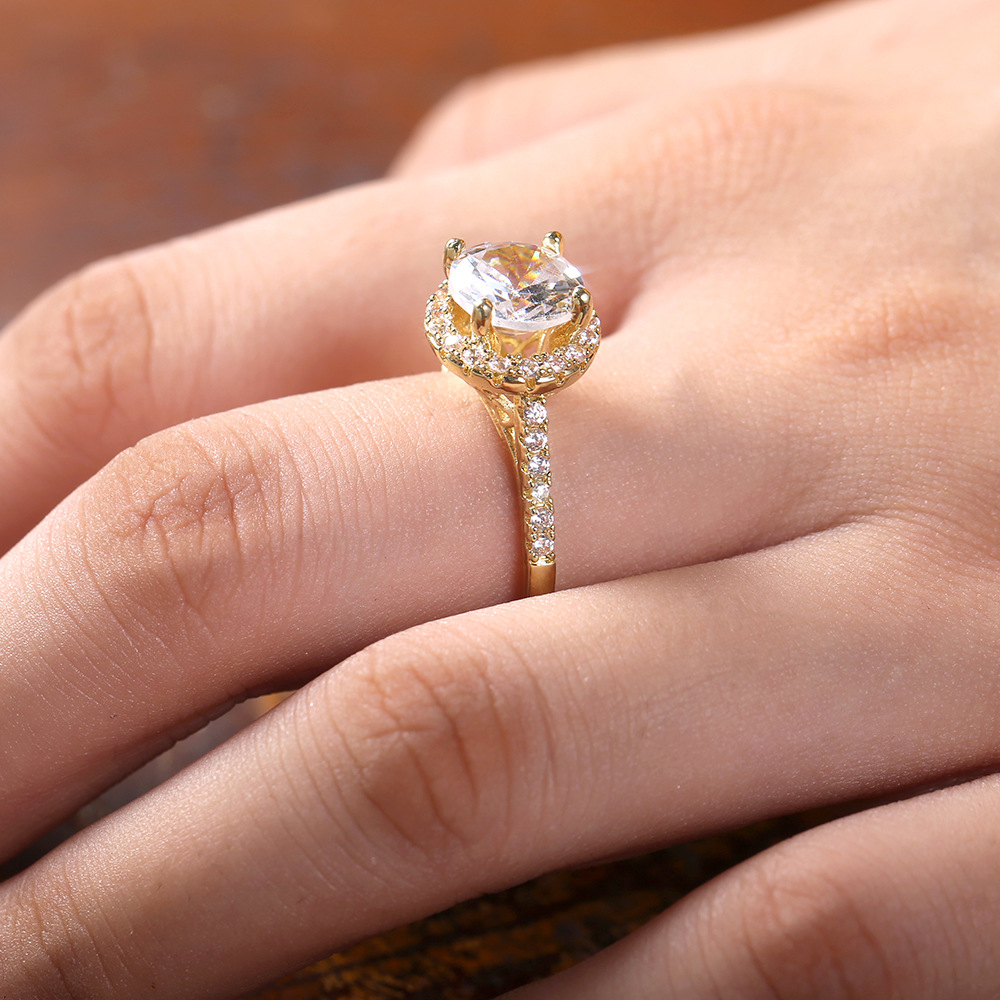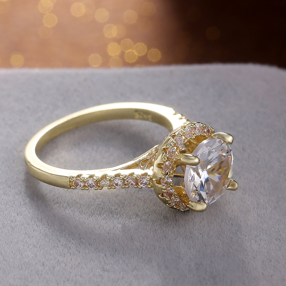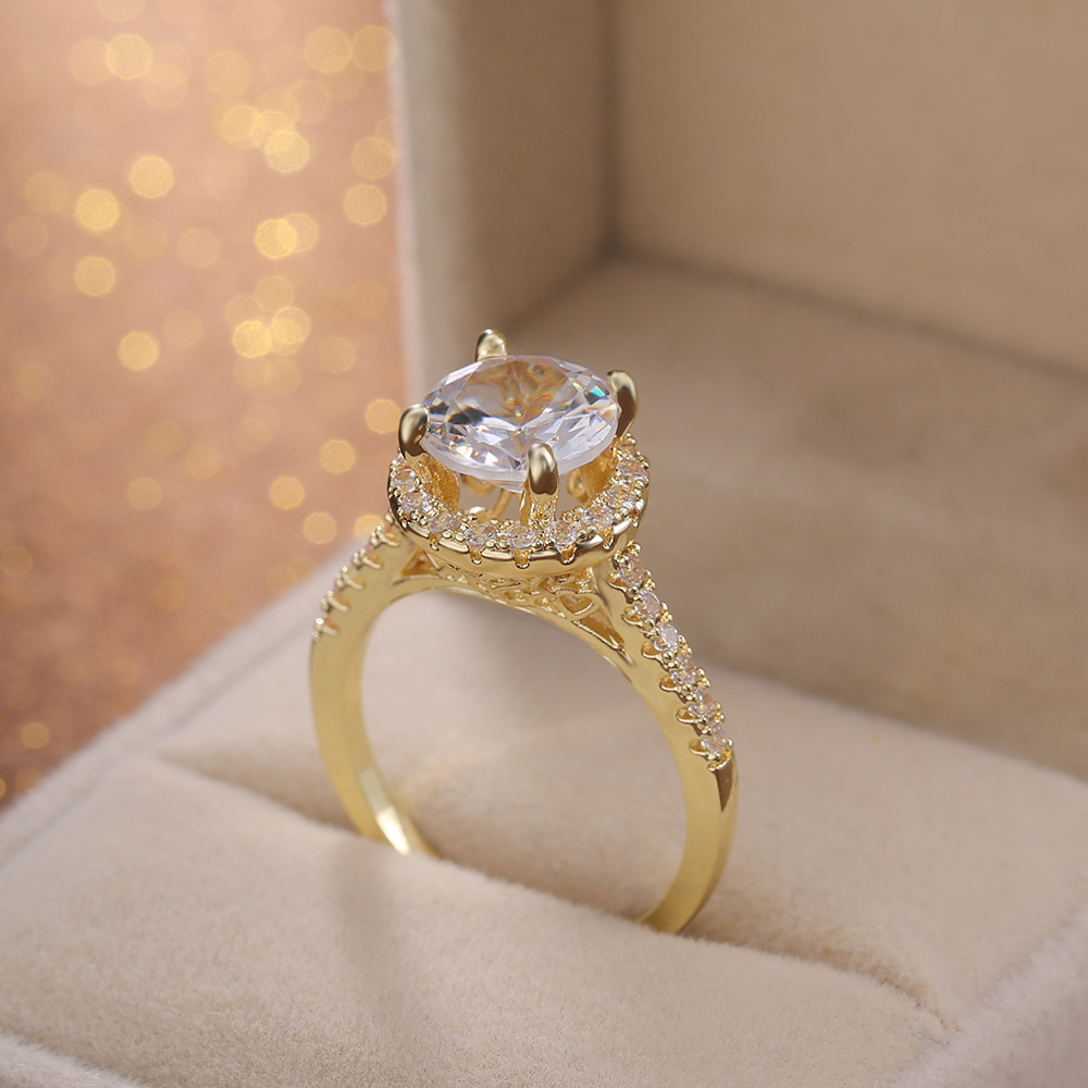 Micro-inlaid celebrity style classic all-match popular ring six-claw zircon wedding ring European and American style light luxury ring