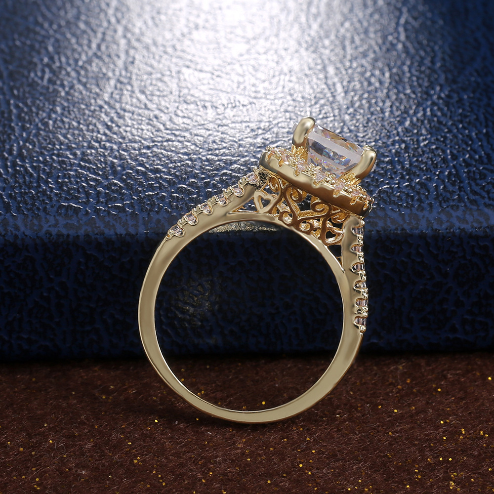 European and American new hollow women's large zircon engagement ring retro and elegant proposal wedding jewelry