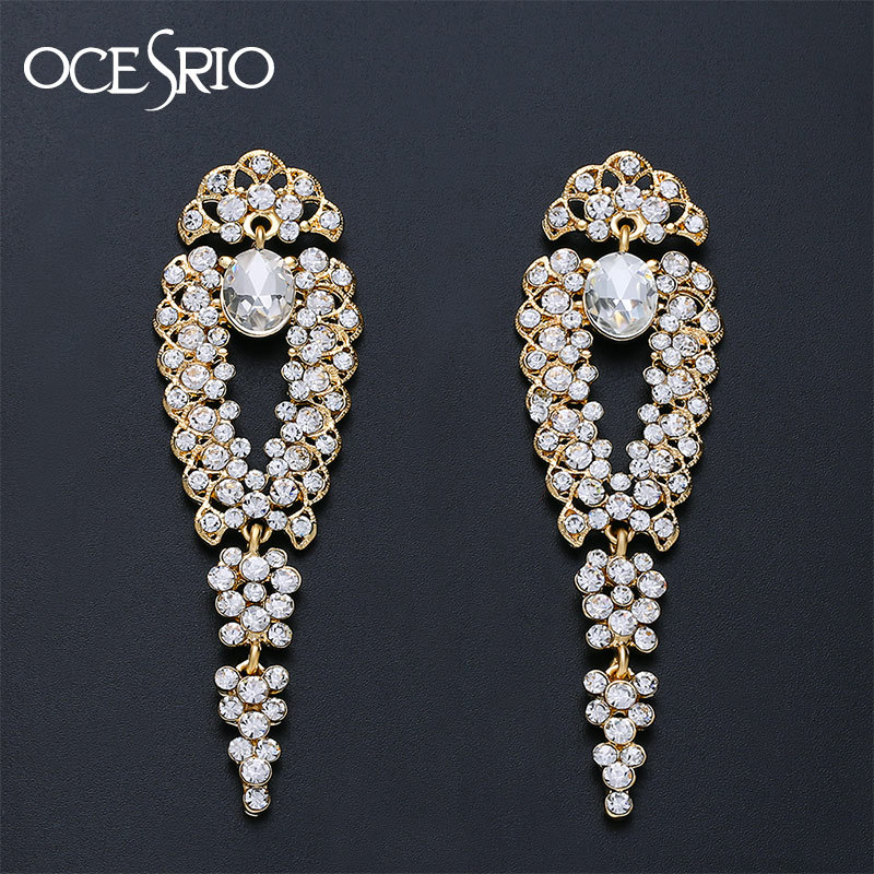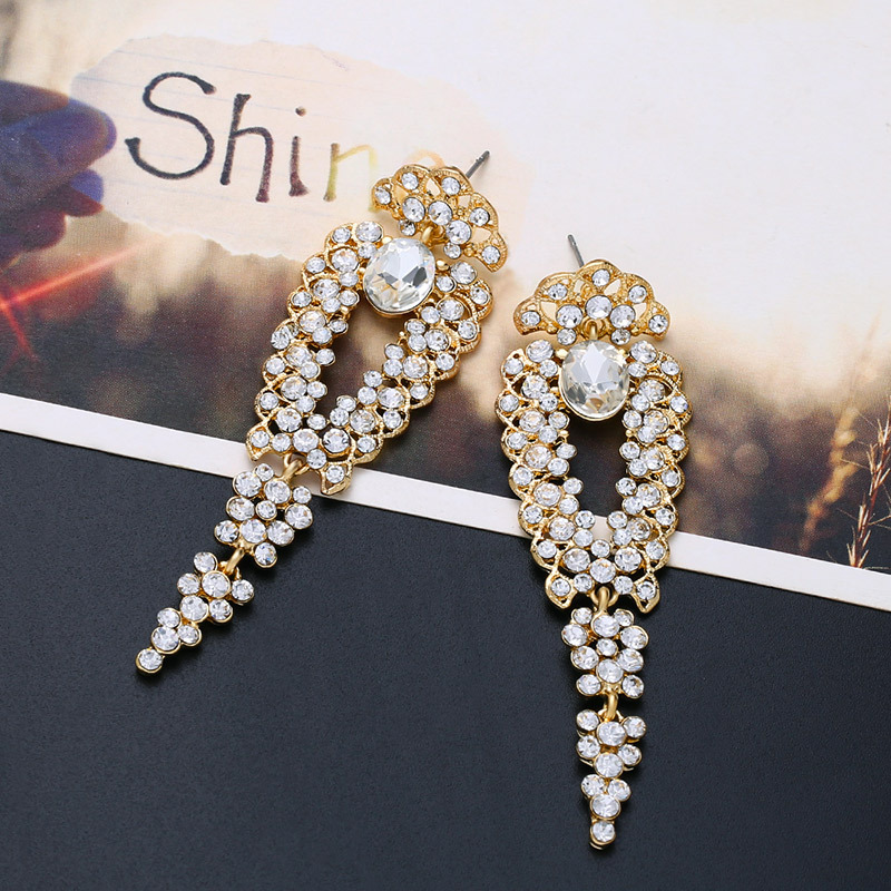 European and American new hot-selling niche simple diamond water drop bridal wedding long earrings earrings female ern62