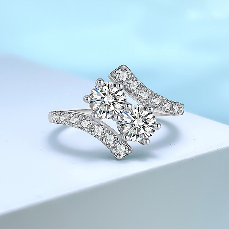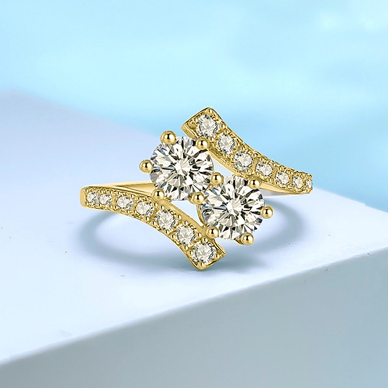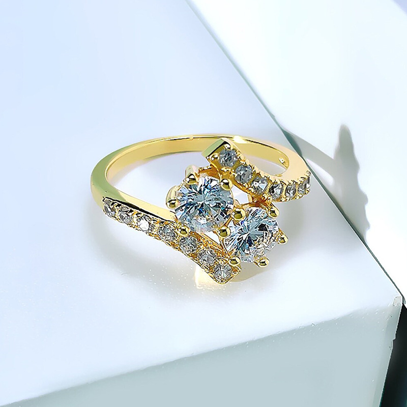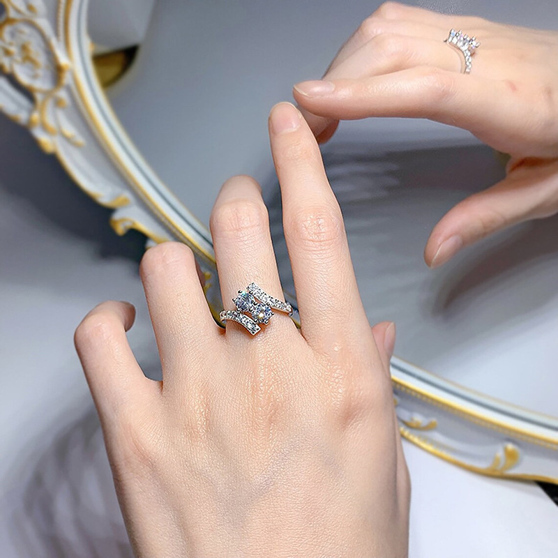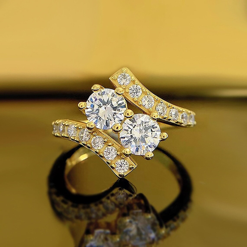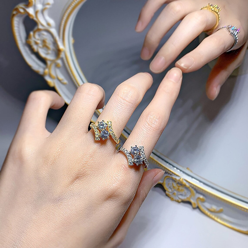 Classic four-claw imitation zircon micro-inlaid ring women's double row two-color twist arm ring engagement wedding ring women