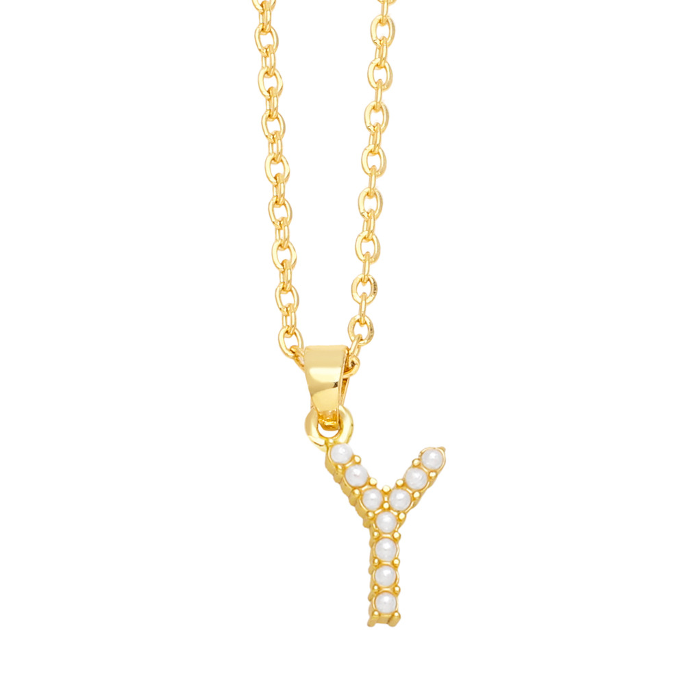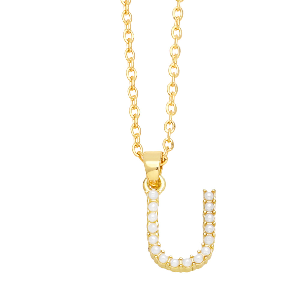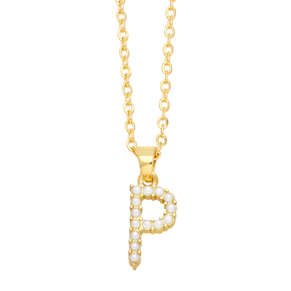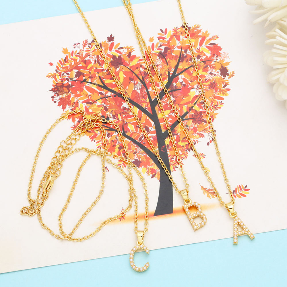 European and American new imitation pearl 26 letter necklace female temperament simple English letter clavicle necklace female nkn42
