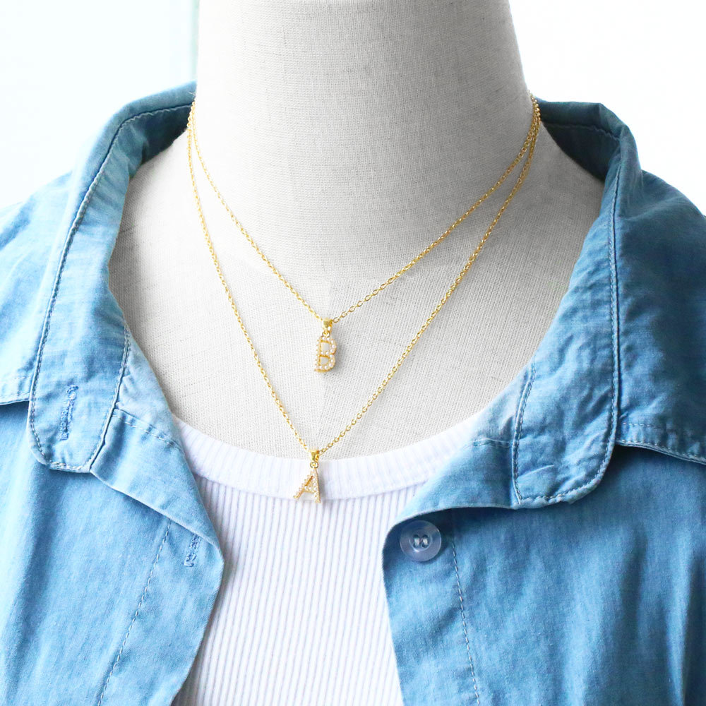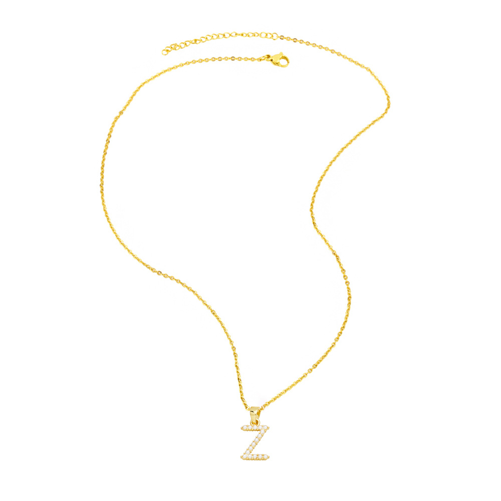 Letter necklace European and American new color zircon necklace with diamond surname English AZ letter necklace nkp25