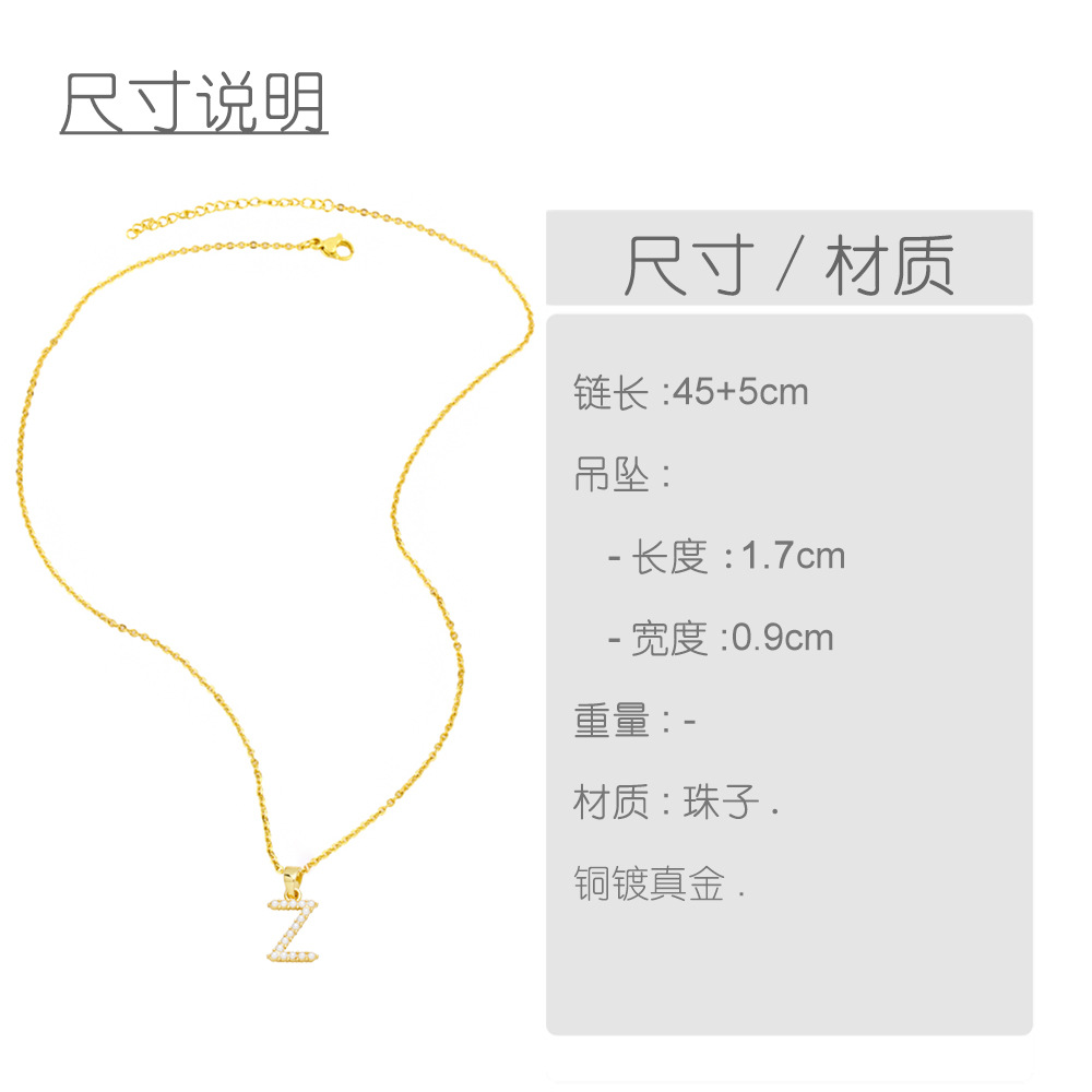 AS jewelry 26 English letters necklace female copper plated real gold inlaid zircon clavicle chain nky42