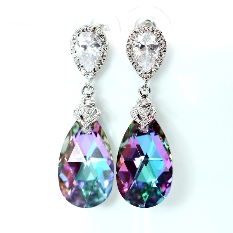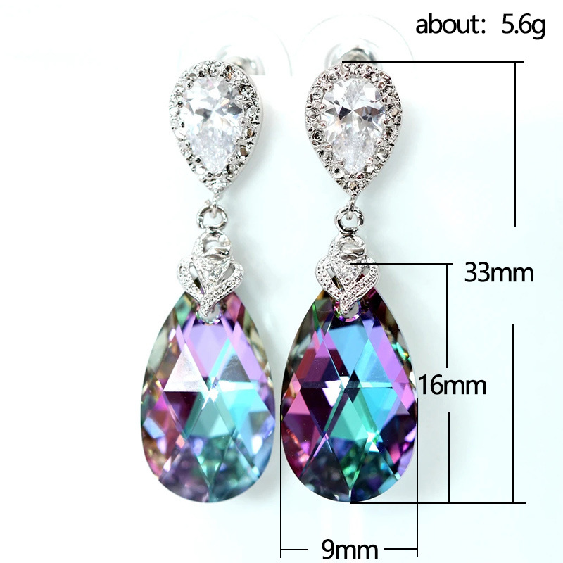 European and American new jewelry set women's colorful crystal glass pendant necklace teardrop earrings wholesale