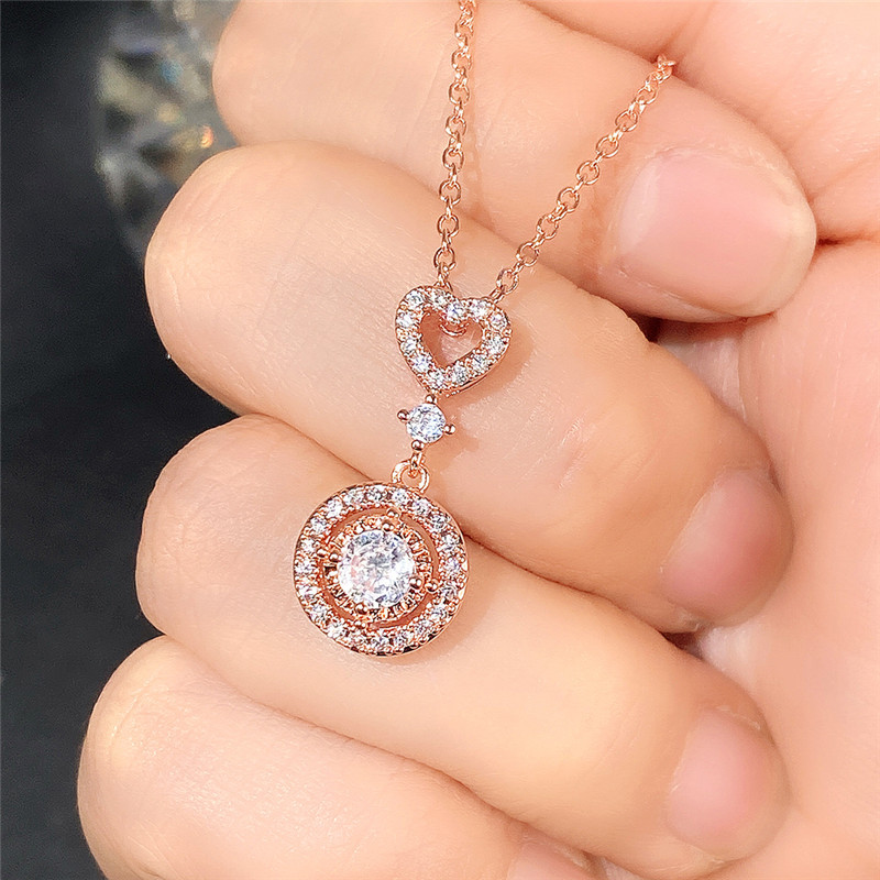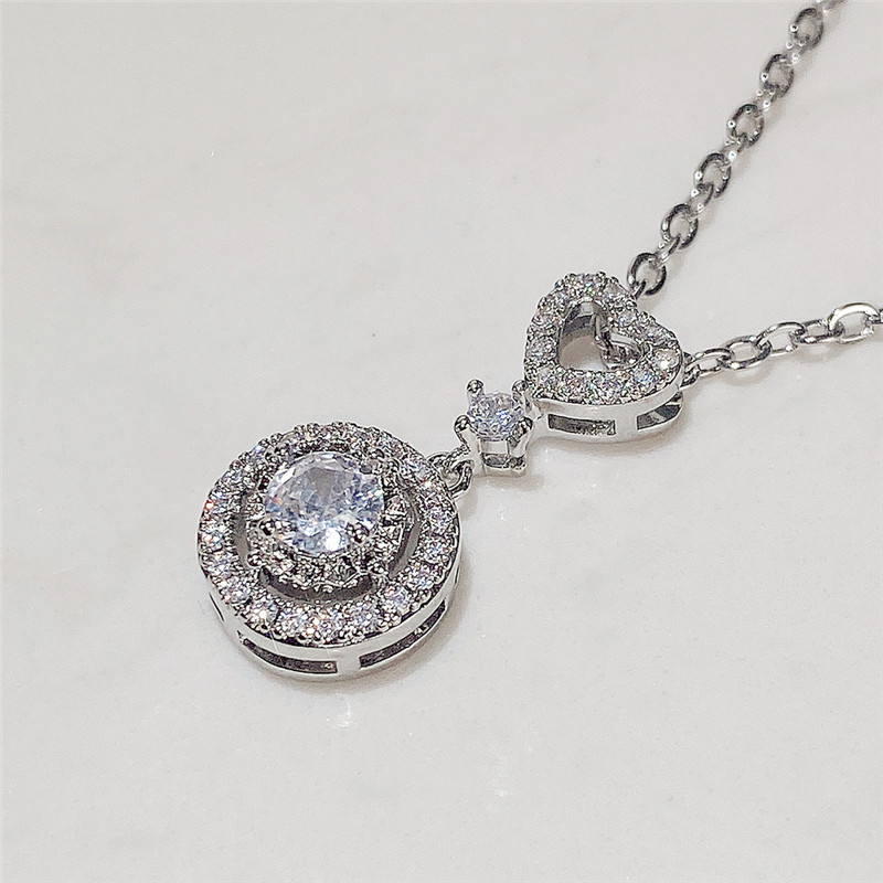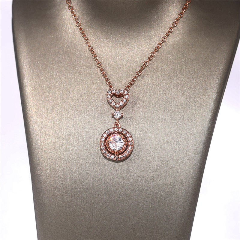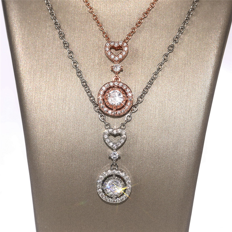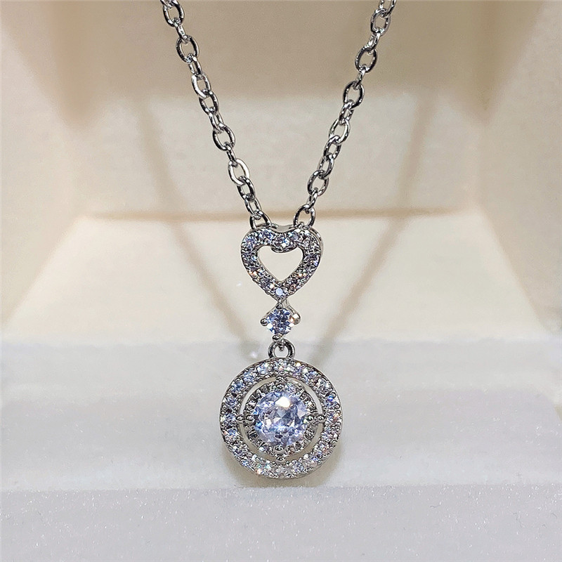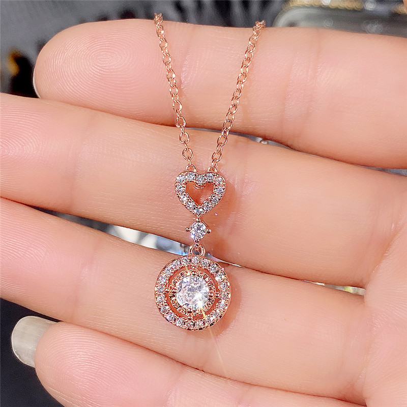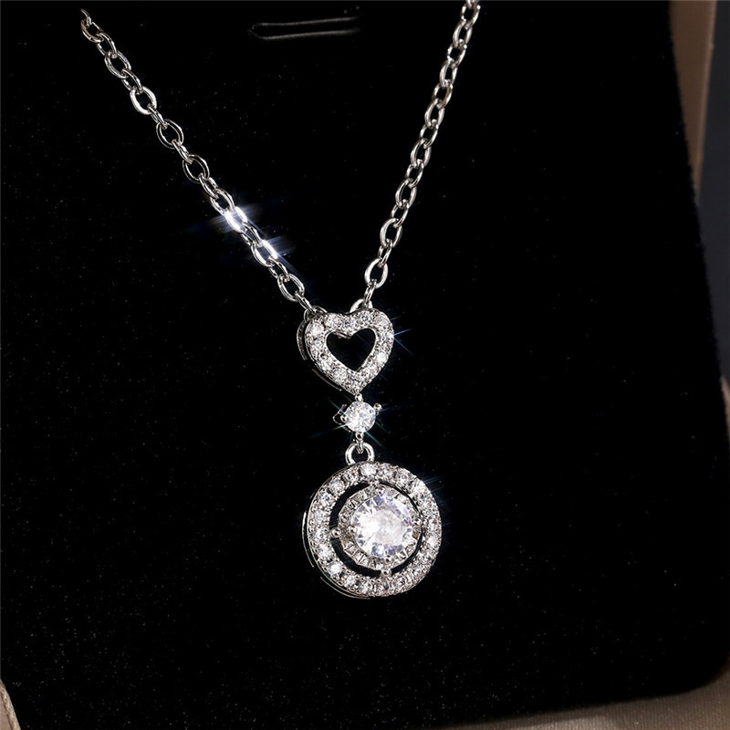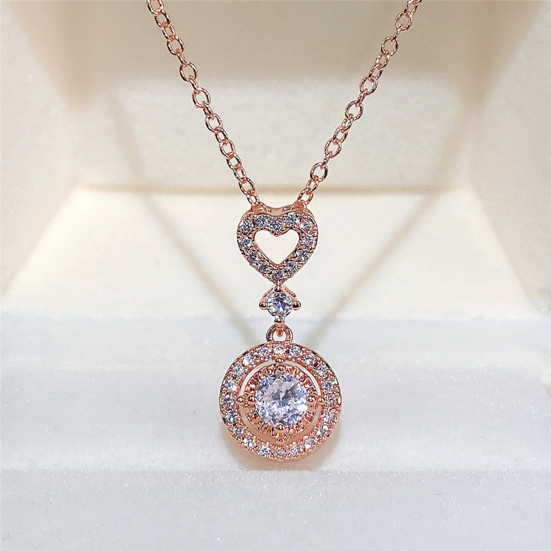 European and American new jewelry simple and fashionable geometric heart-shaped zircon necklace versatile zircon clavicle necklace