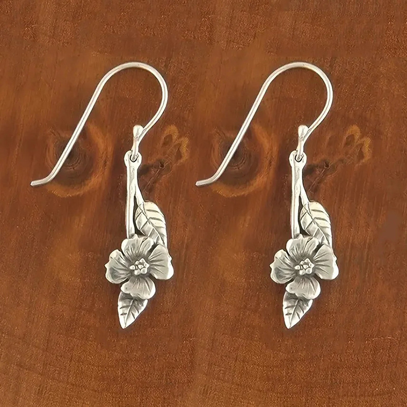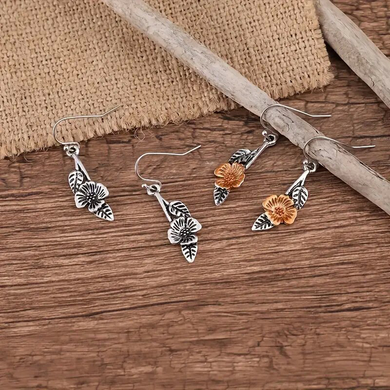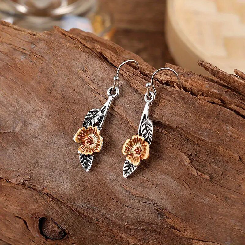 European and American new leaf flower earrings two-color retro niche simple earrings long earrings