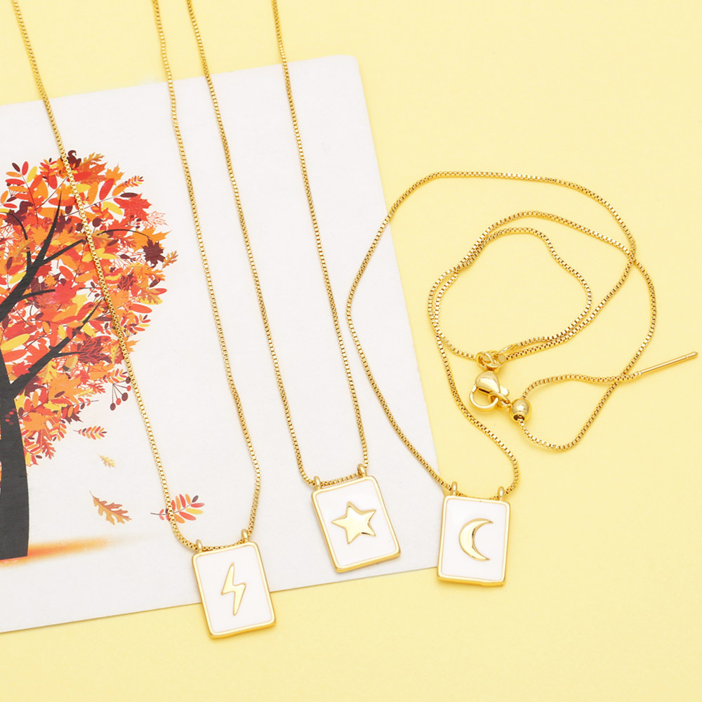 European and American new lightning star moon square pendant necklace simple temperament versatile clavicle chain female nkq38