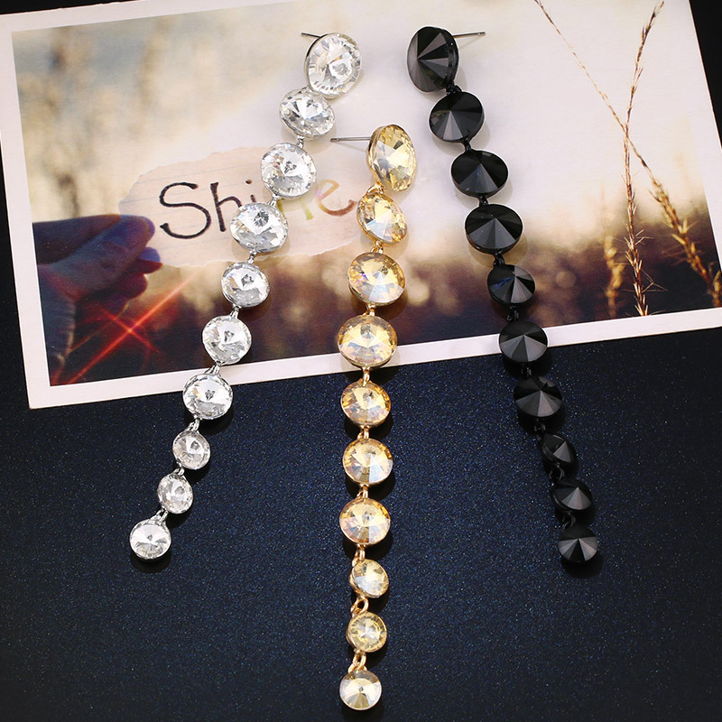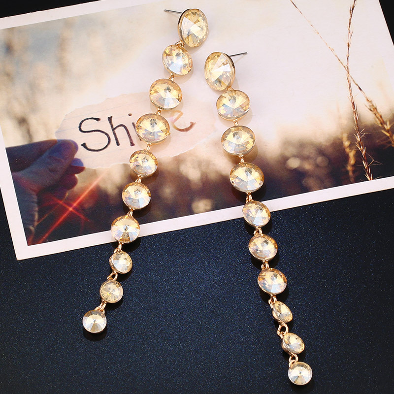 European and American new long bridal wedding crystal earrings female simple high-end round earrings erm57