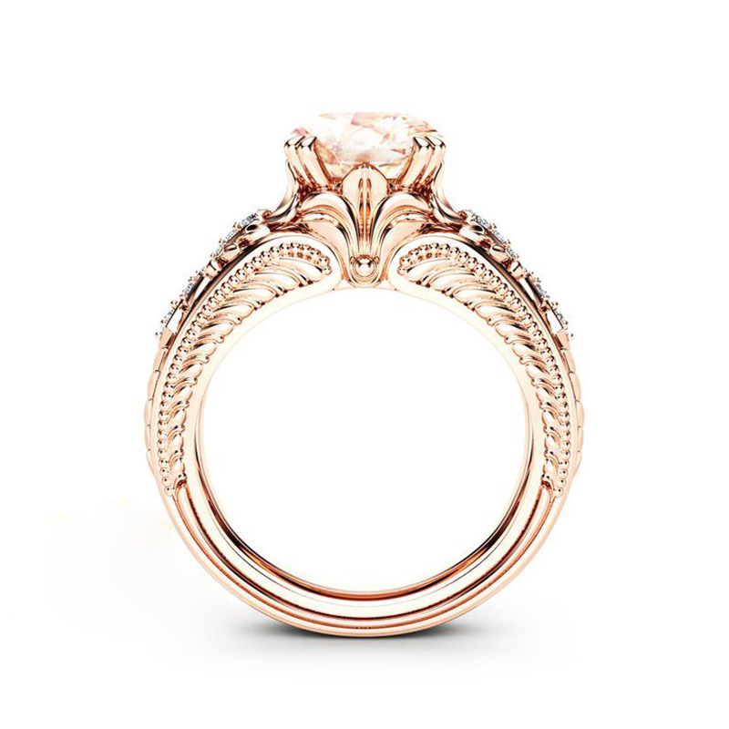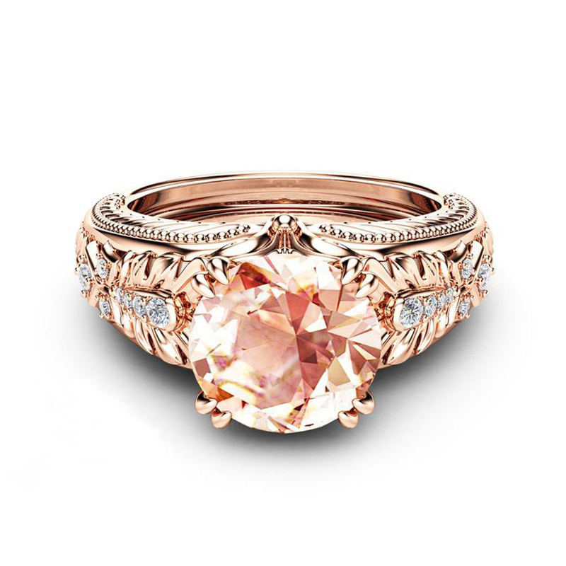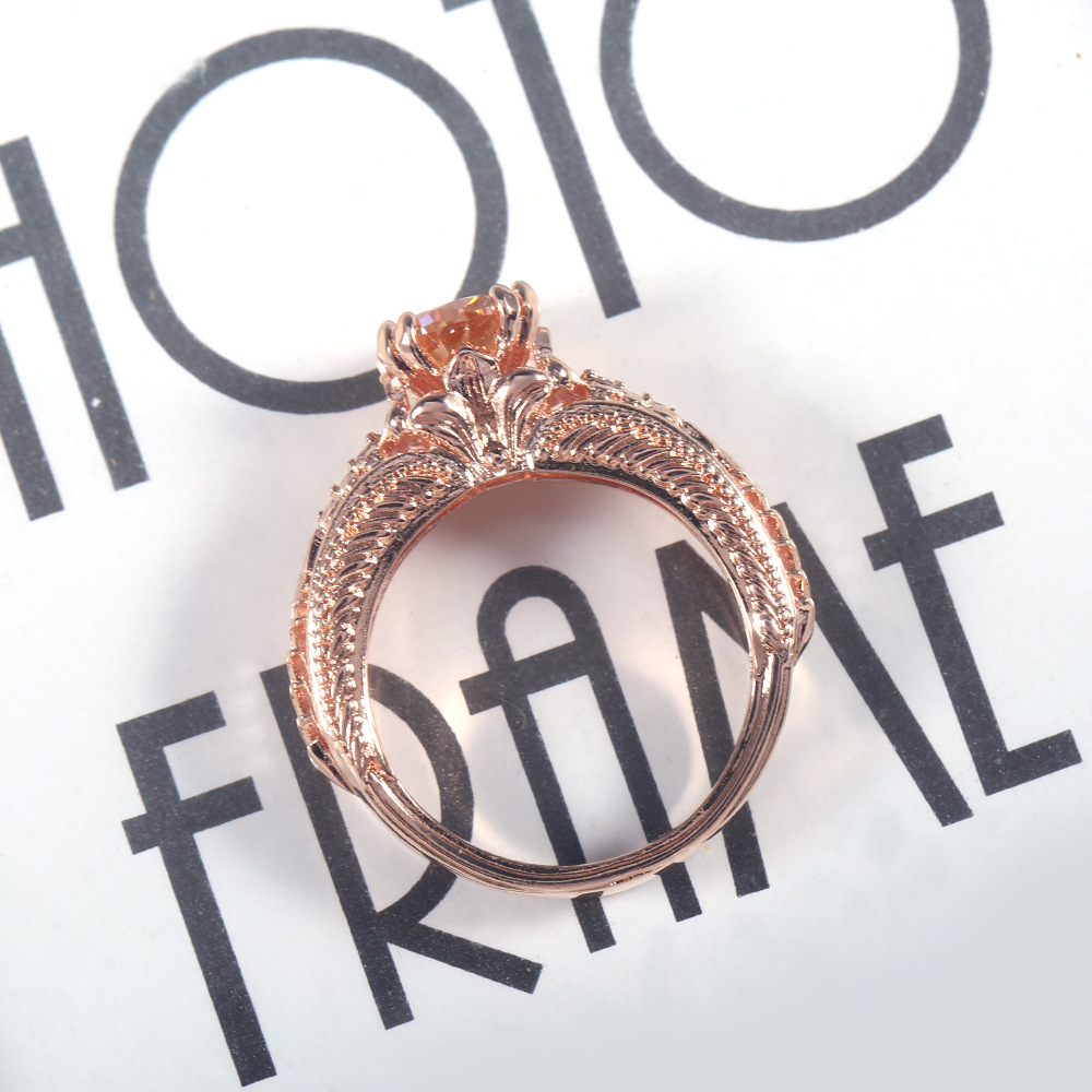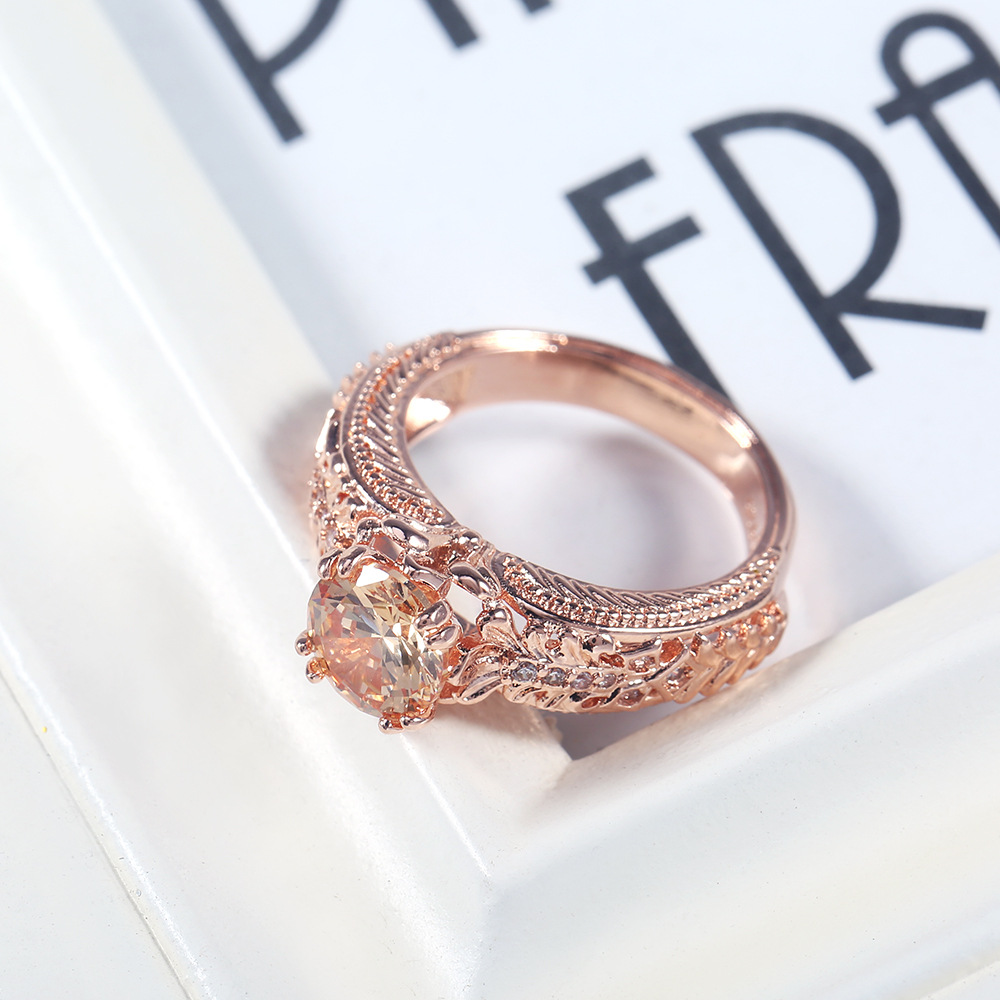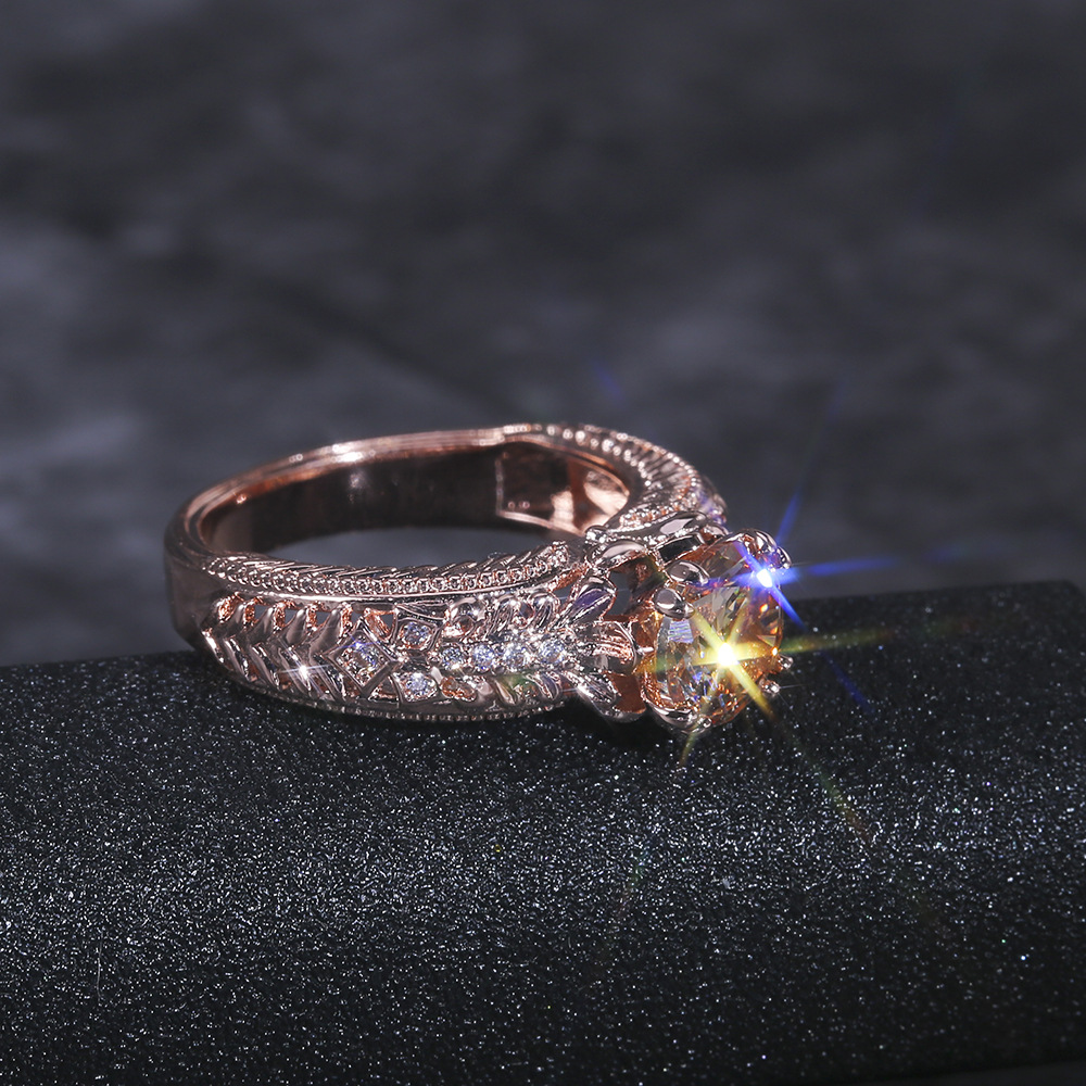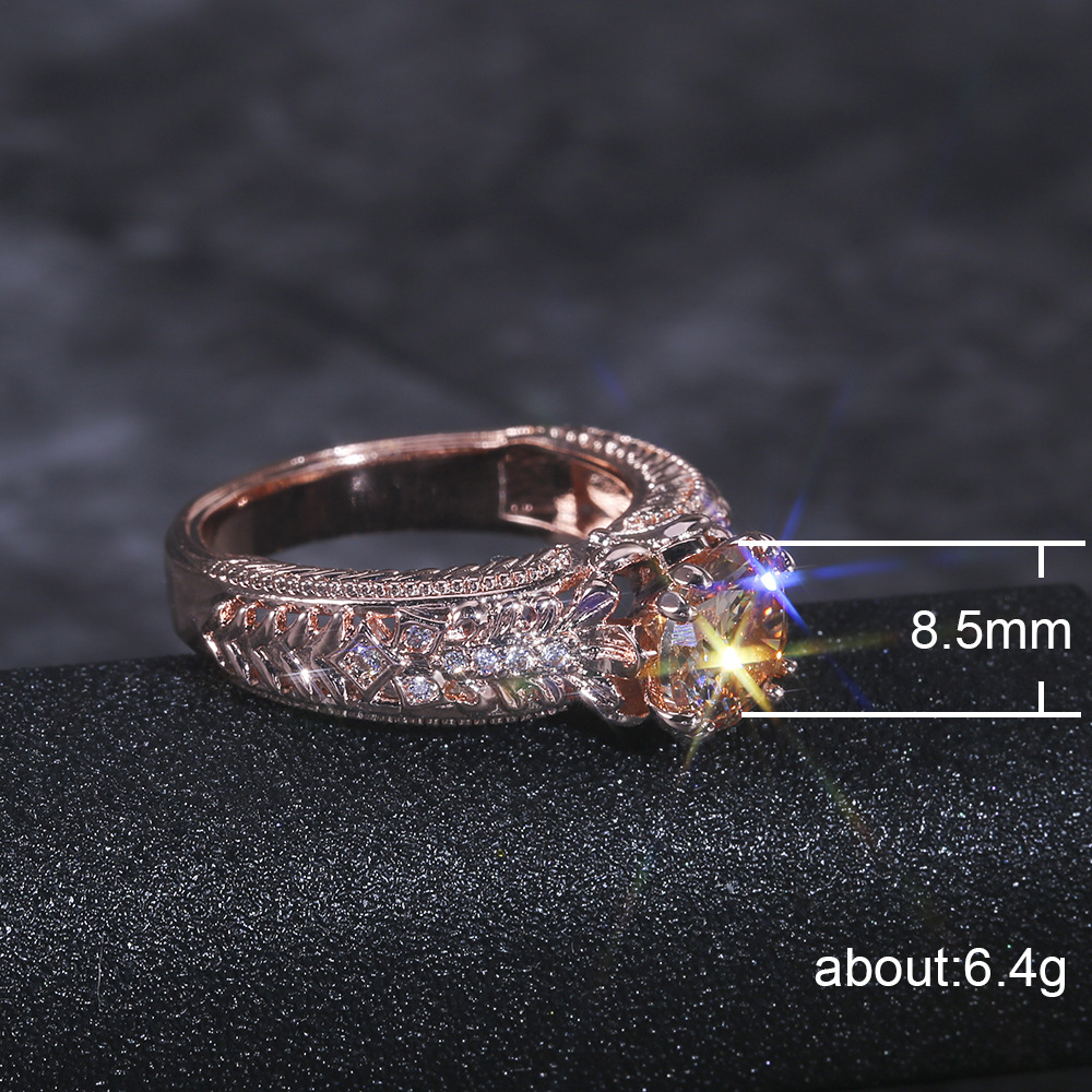 European and American new luxury rose gold zircon single ring ring women's engagement ring jewelry