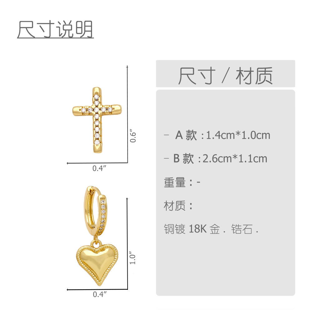 European and American new metal style heart earrings female cold style cross earrings niche retro earrings ert67