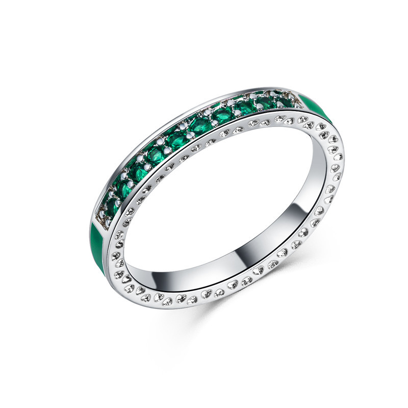 European and American new multi-color imitation diamond inlaid zircon double ring ladies hand jewelry copper ring