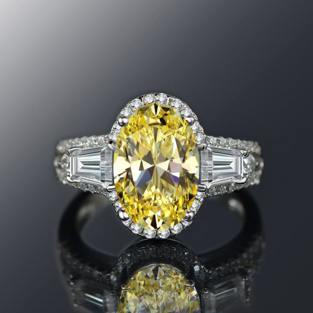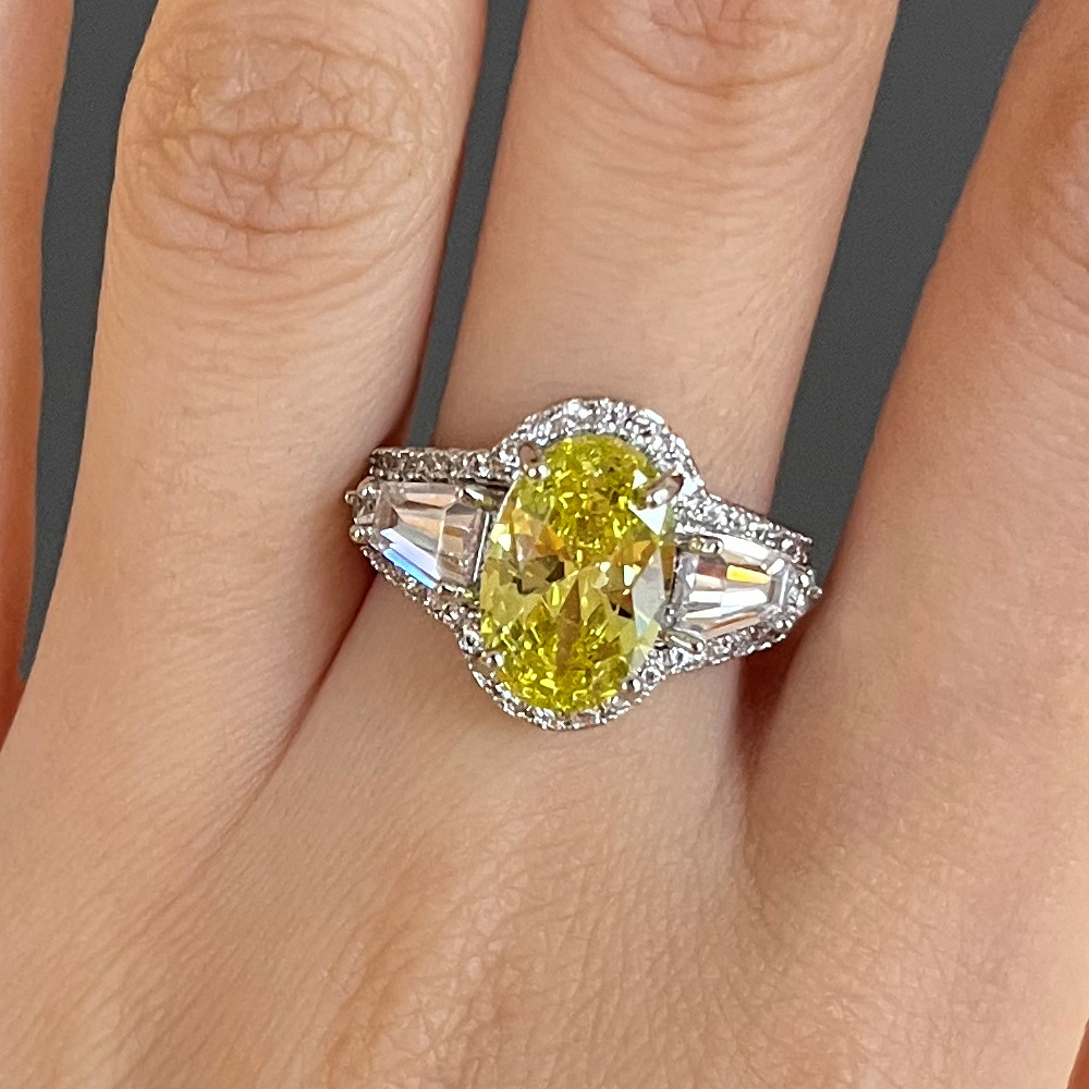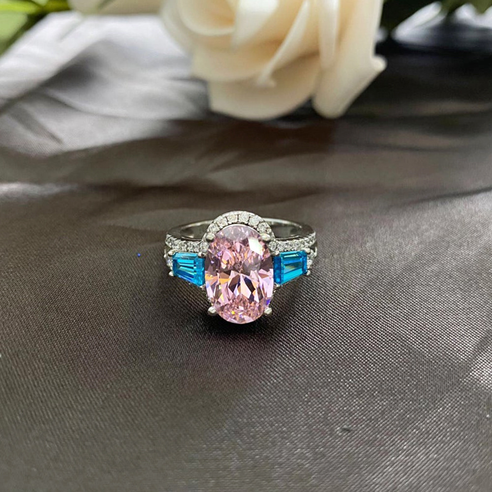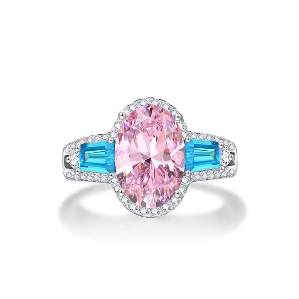 European and American new platinum-plated fashion women's ring light luxury niche model colored gemstone egg-shaped zircon ring female