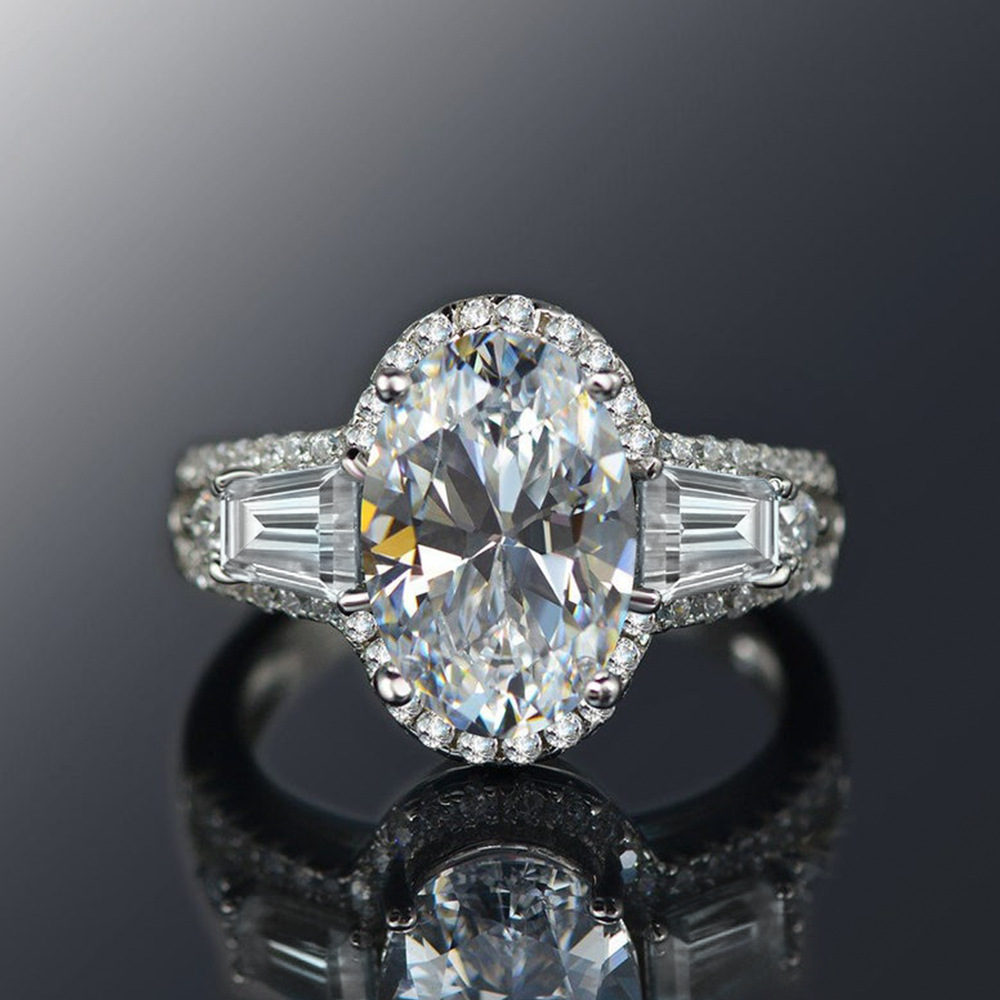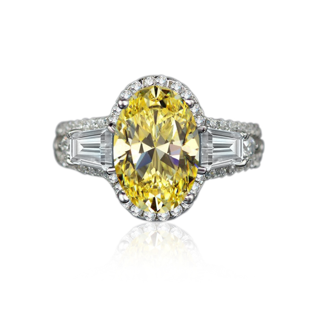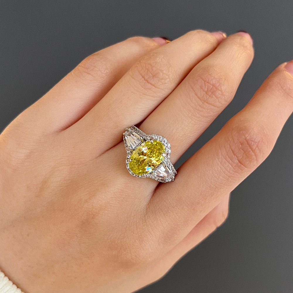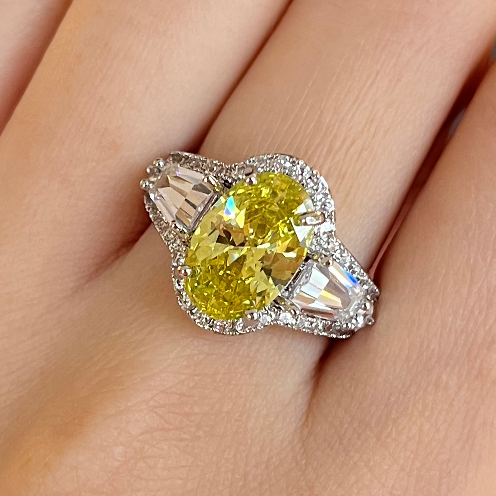 European and American new platinum-plated fashion women's ring light luxury niche model colored gemstone egg-shaped zircon ring female