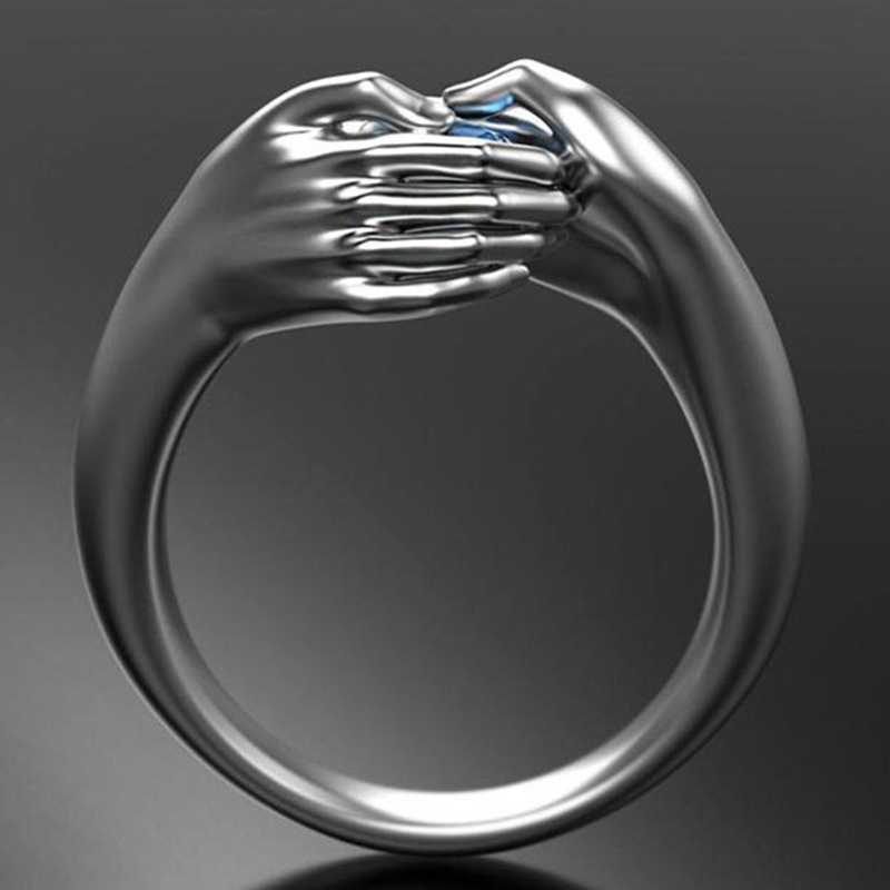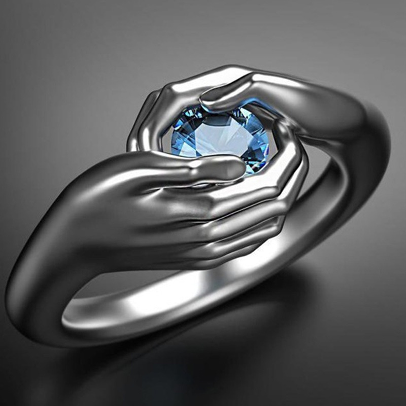 European and American new retro hands hug blue zircon copper ring punk style Halloween gift
