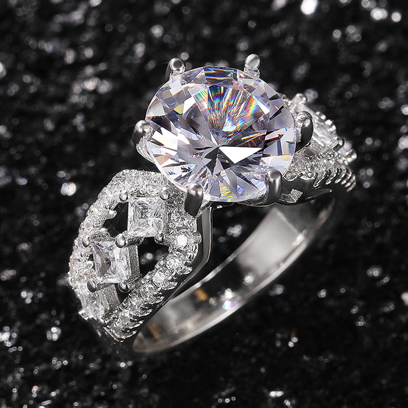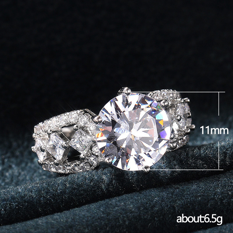 Micro-inlaid celebrity style classic all-match popular ring six-claw zircon wedding ring European and American style light luxury ring