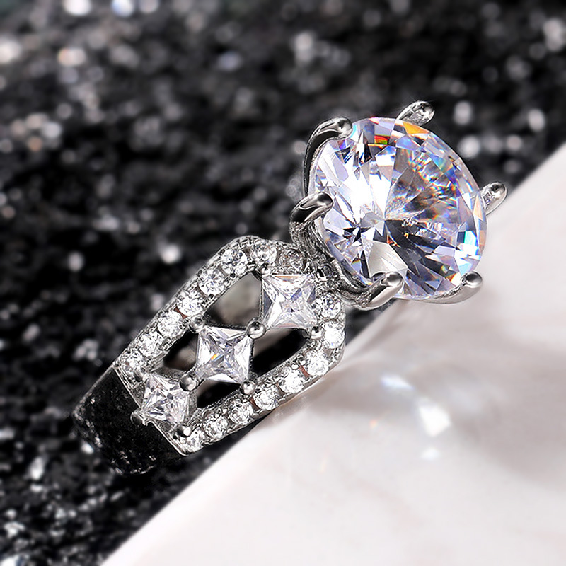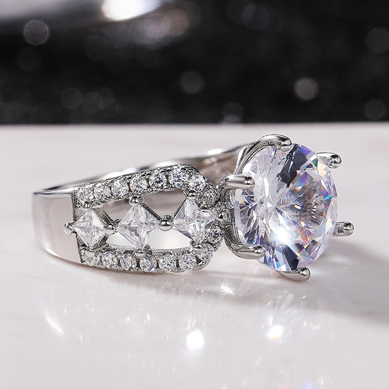 New zircon ring hollow cross four claws fashion design proposal wedding ring birthday gift ring