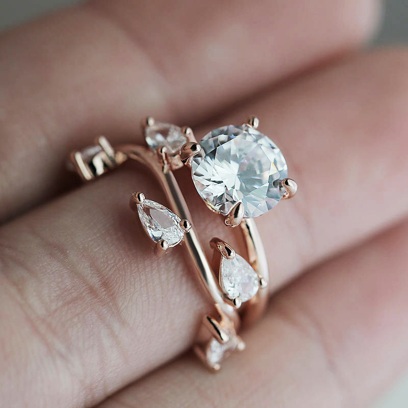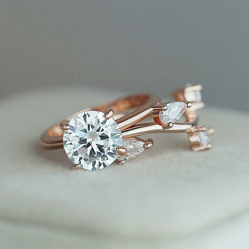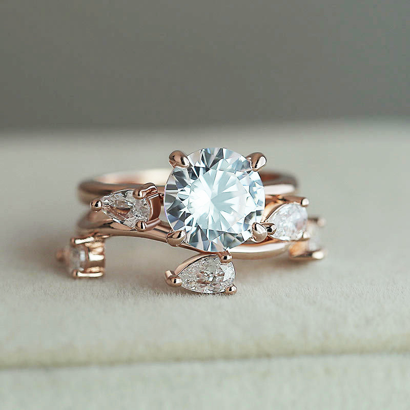 New best-selling super flash ring tree branch bud four-claw inlaid ring light luxury wedding ring for girlfriend