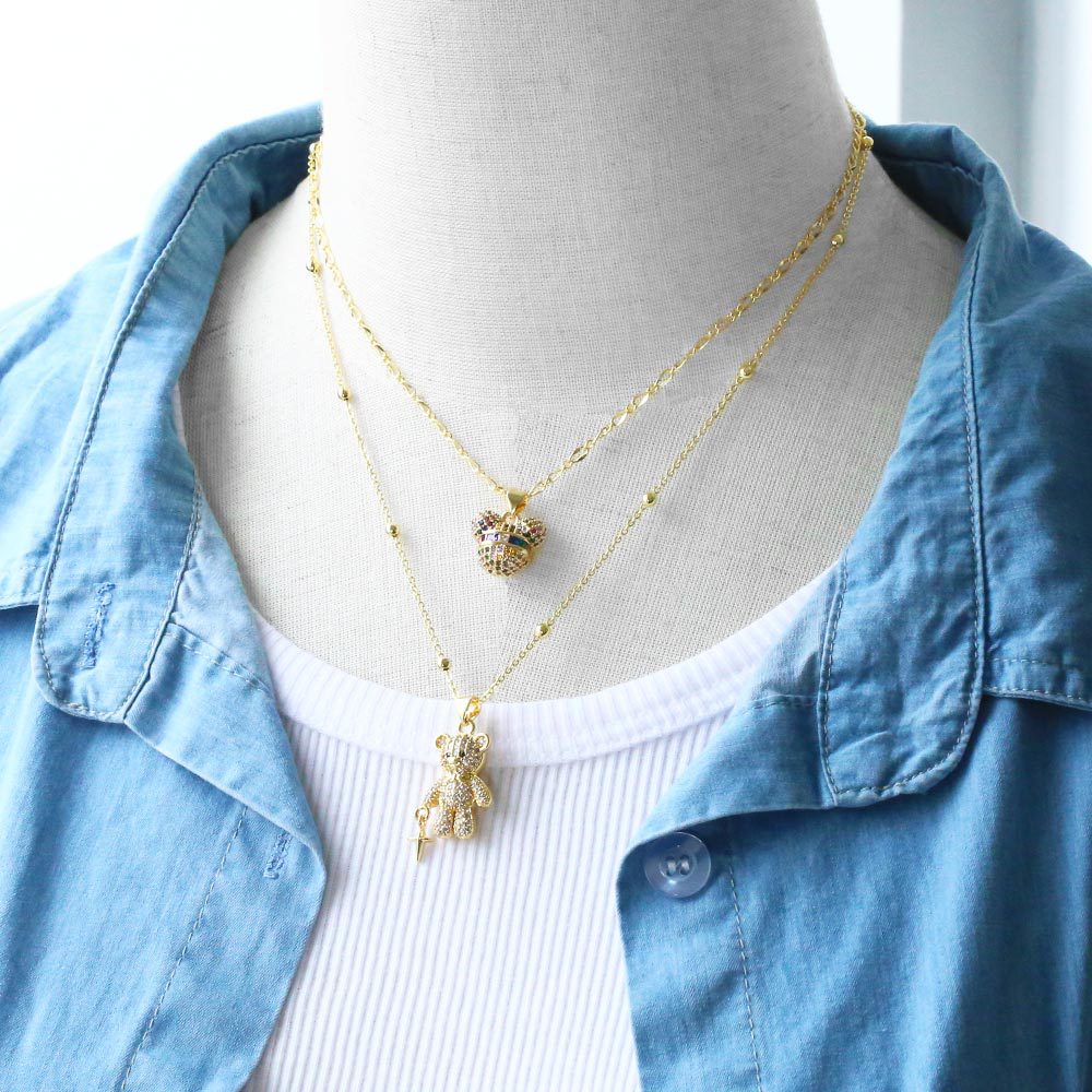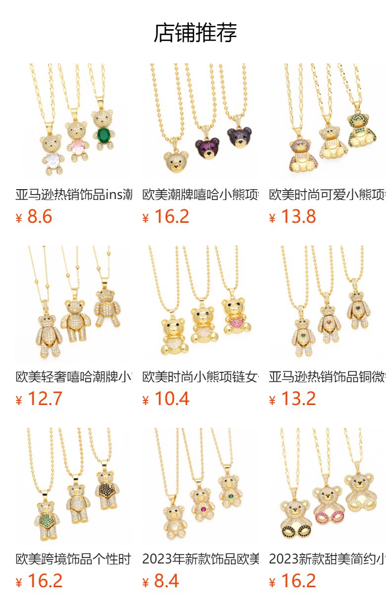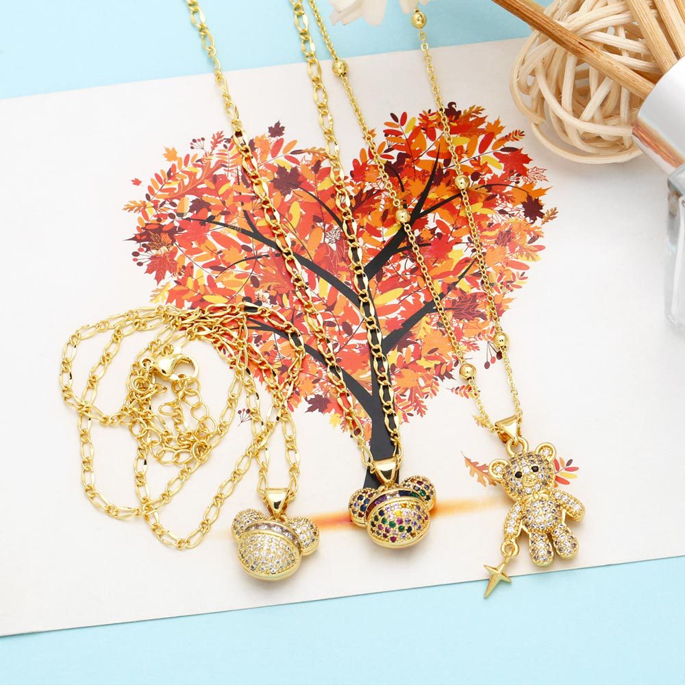 European and American new simple cute full diamond zircon bear necklace fashion personality all-match clavicle chain nkz33