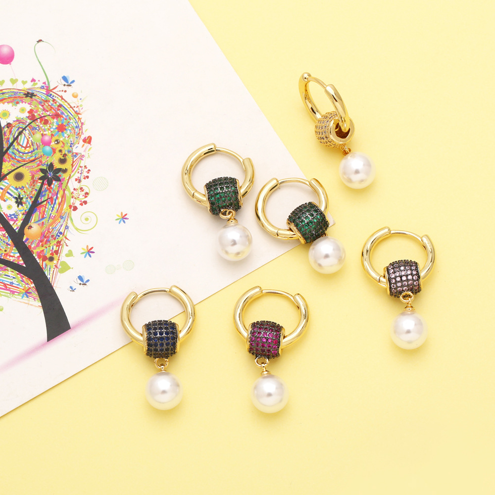 Simple and fashionable colorful zircon heart earrings European and American style exquisite small earrings light luxury temperament earrings female era242
