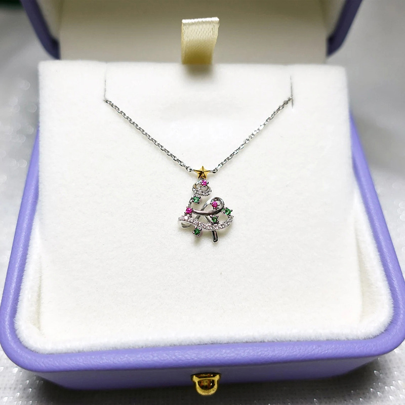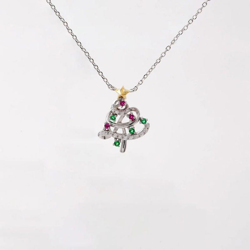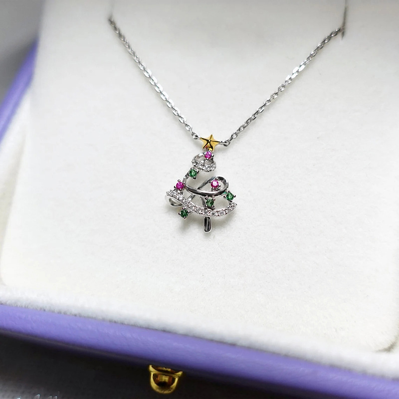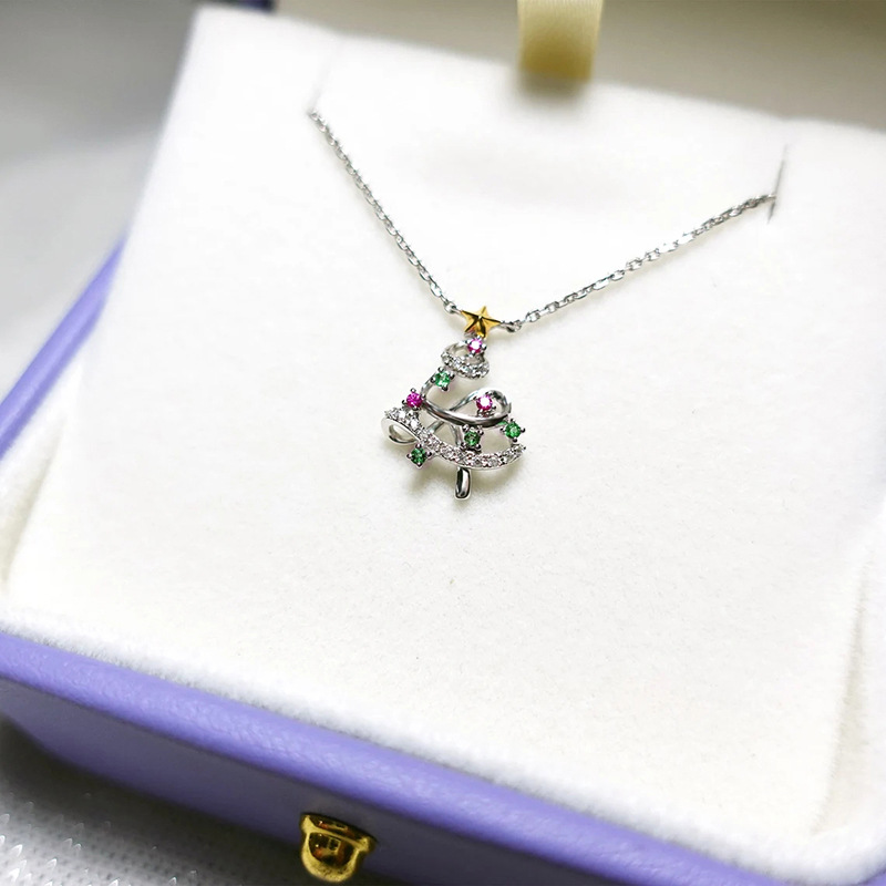 European and American new small and exquisite Christmas tree necklace colorful sweet holiday gift shining pendant jewelry
