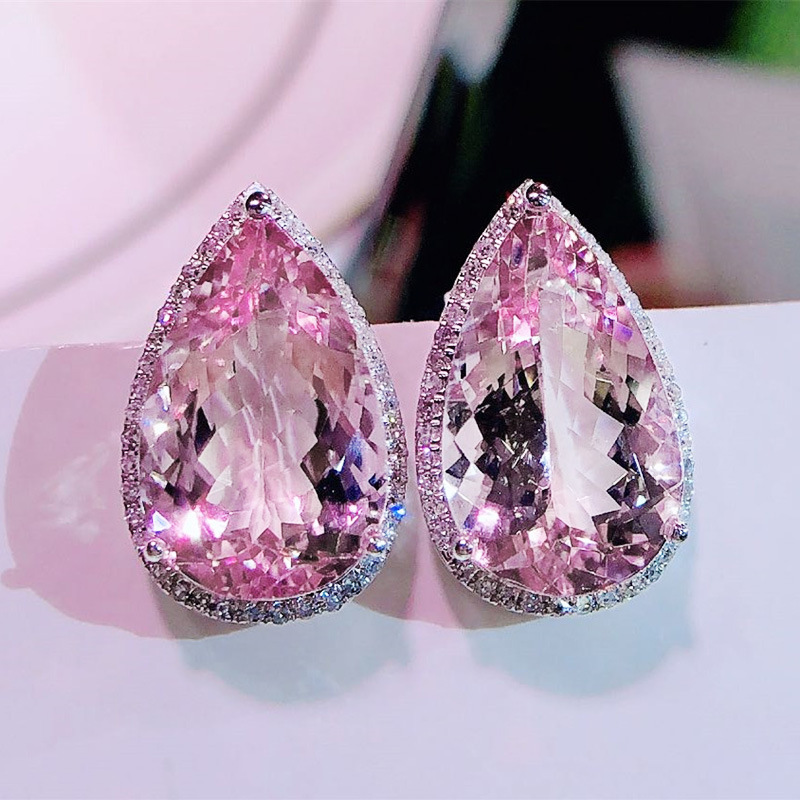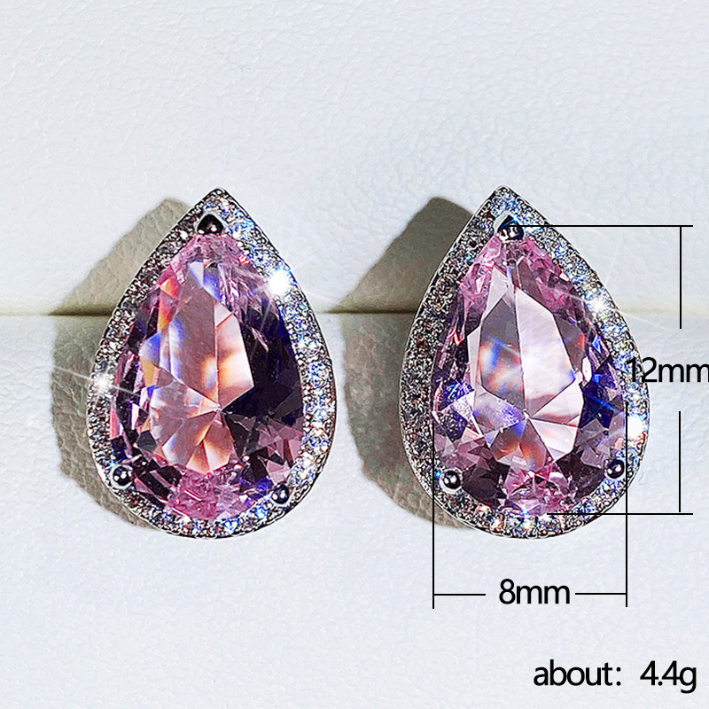European and American new style earrings sweet pear-shaped water drop pink diamond zircon earrings for women Valentine's Day gift for girlfriend