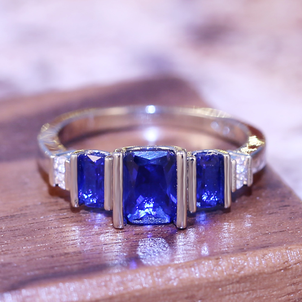 European and American new style ring classic design blue crystal ring elegant women's jewelry wholesale