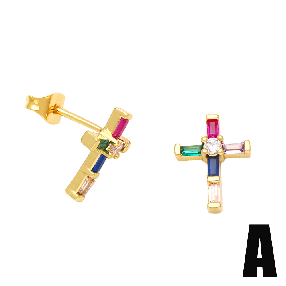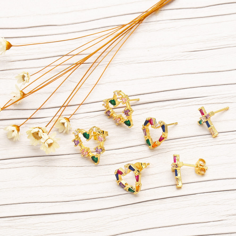 European and American new trendy colorful zircon earrings fashionable and versatile love cross earrings era165
