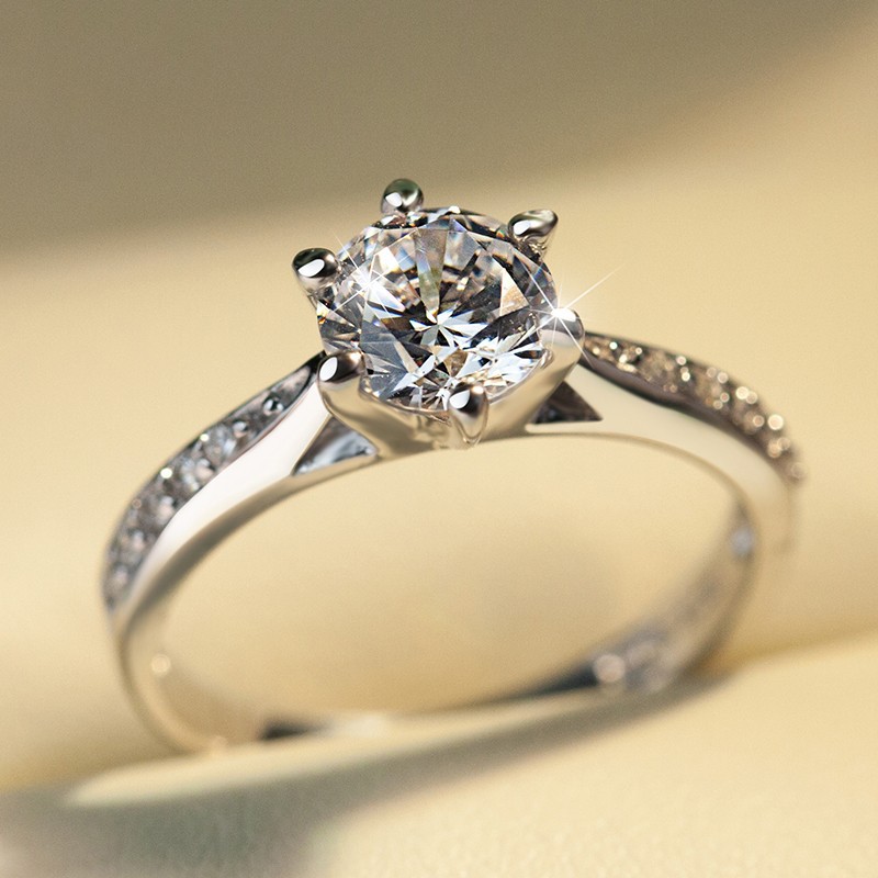 Micro-inlaid celebrity style classic all-match popular ring six-claw zircon wedding ring European and American style light luxury ring