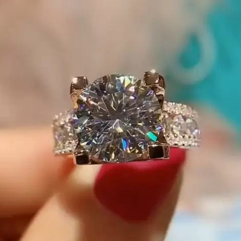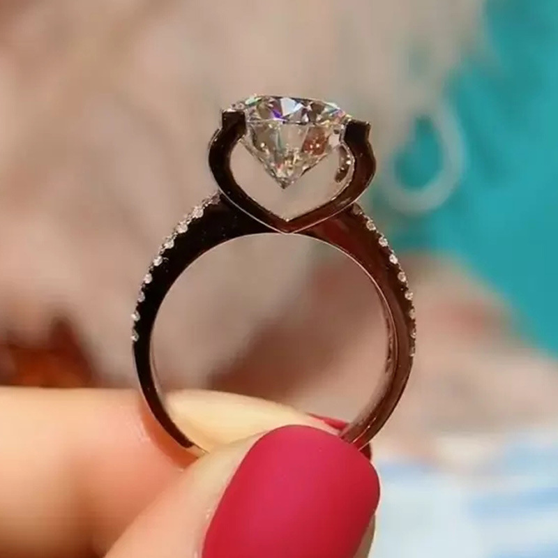 Micro-inlaid celebrity style classic all-match popular ring six-claw zircon wedding ring European and American style light luxury ring