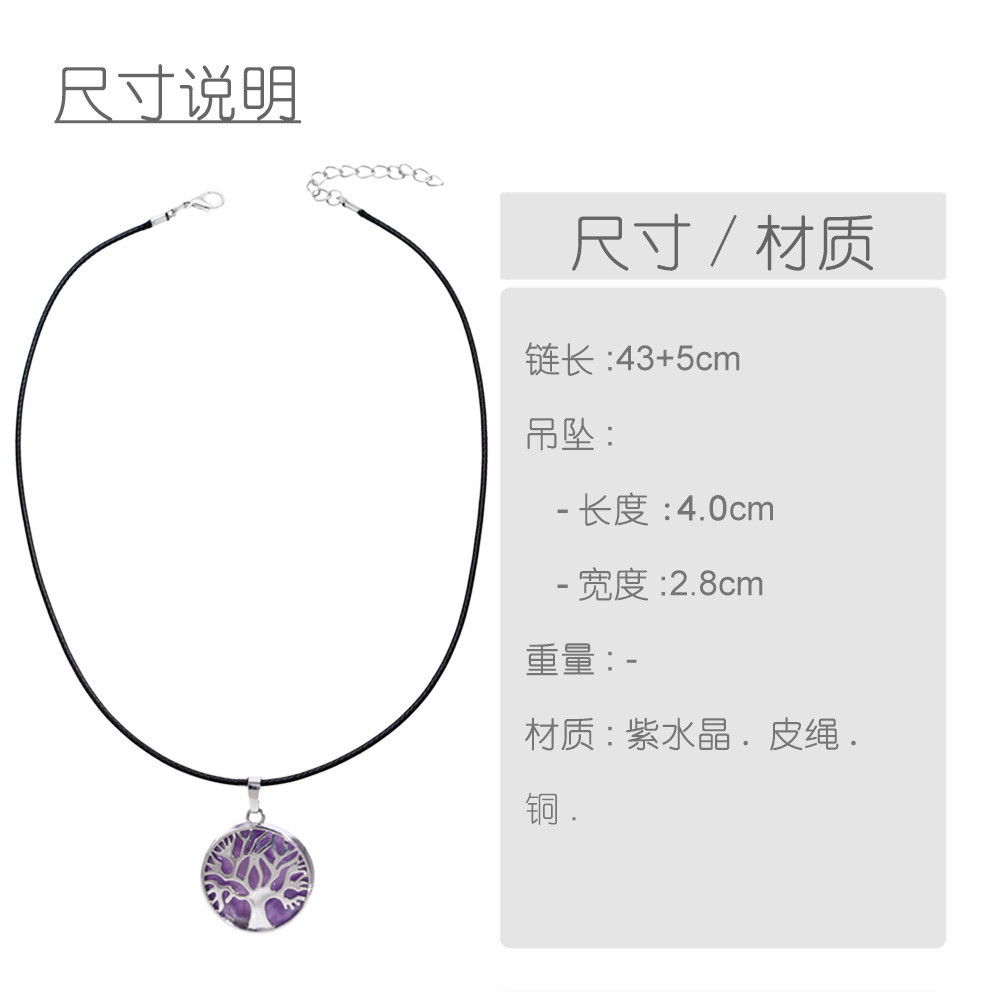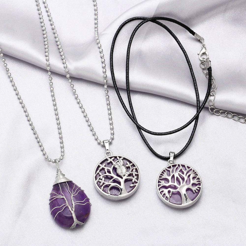 European and American new winding stone tree of life metal copper wire water drop pendant amethyst necklace female nkb707