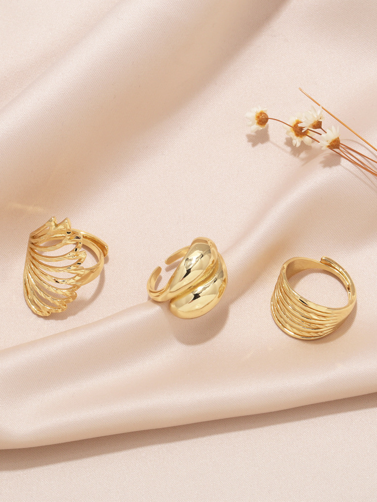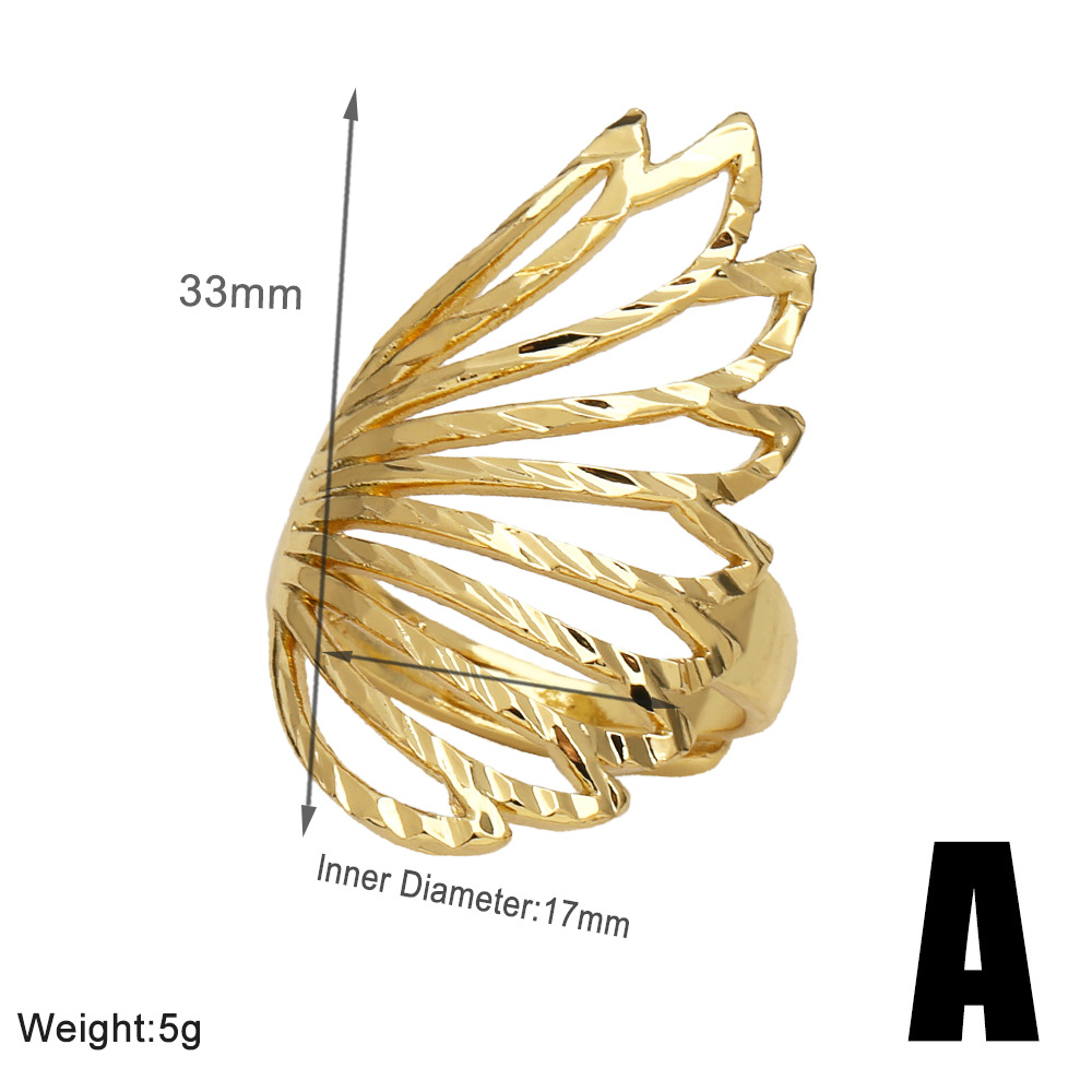 European and American new wing feather open ring female copper plated 18k gold double layer ring ring wholesale rik82