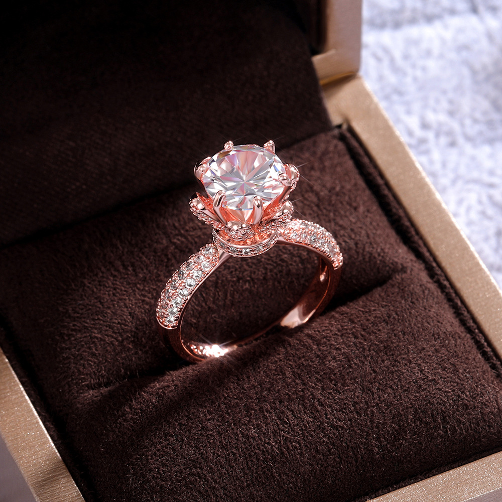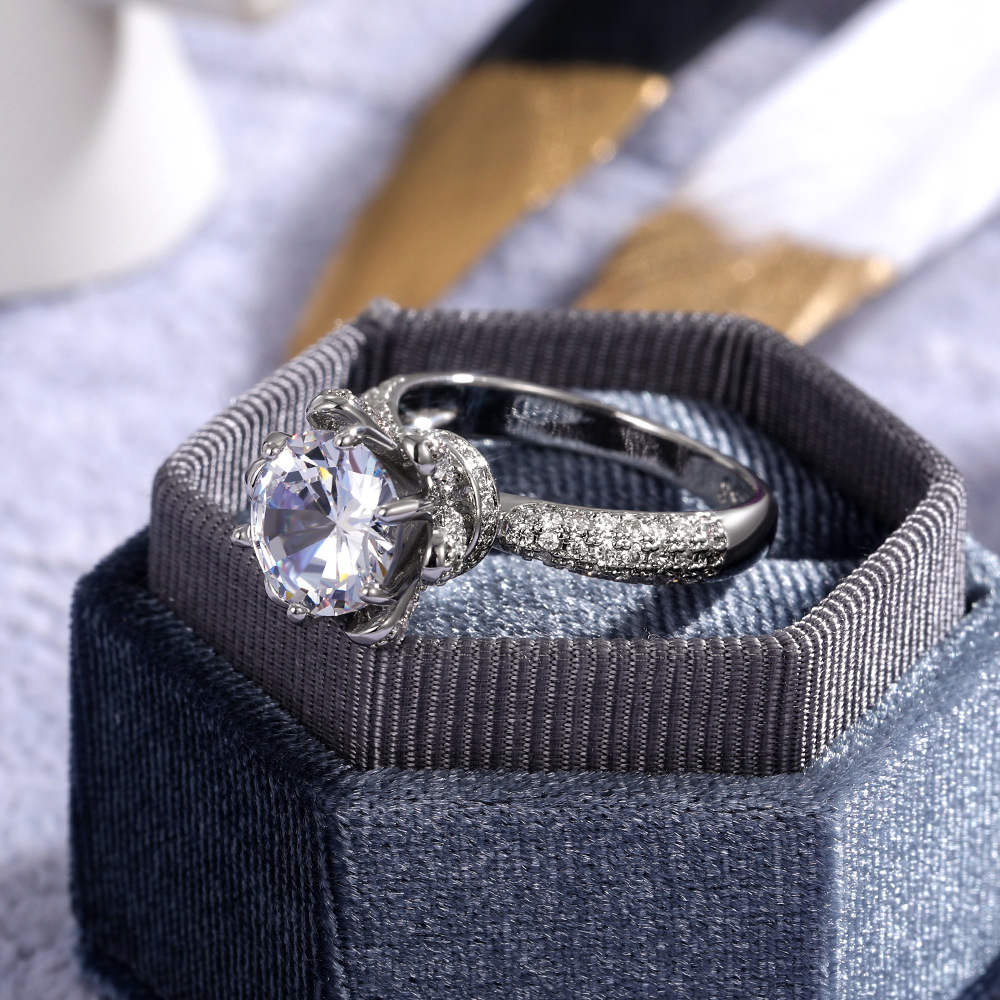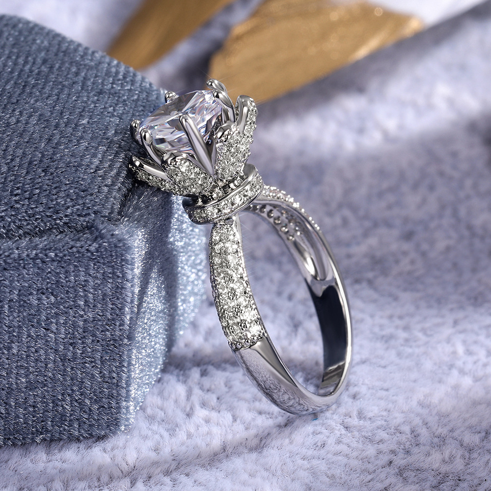 Micro-inlaid celebrity style classic all-match popular ring six-claw zircon wedding ring European and American style light luxury ring