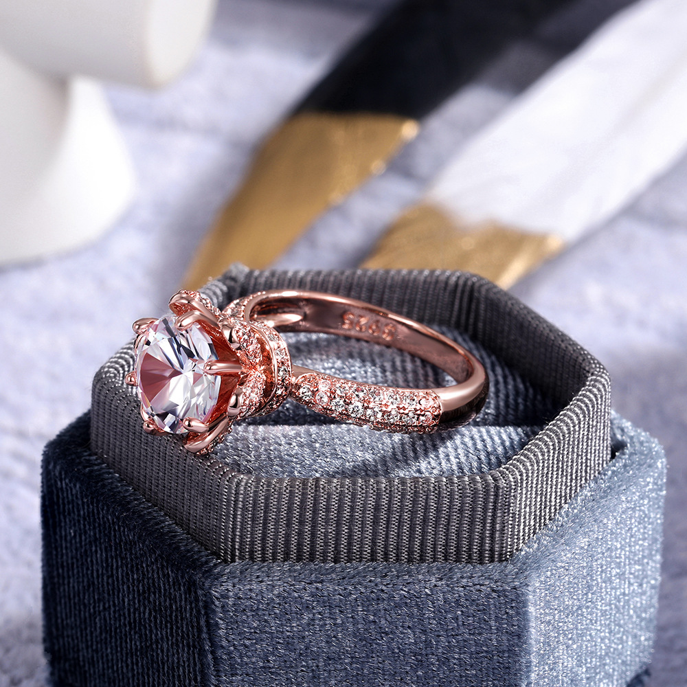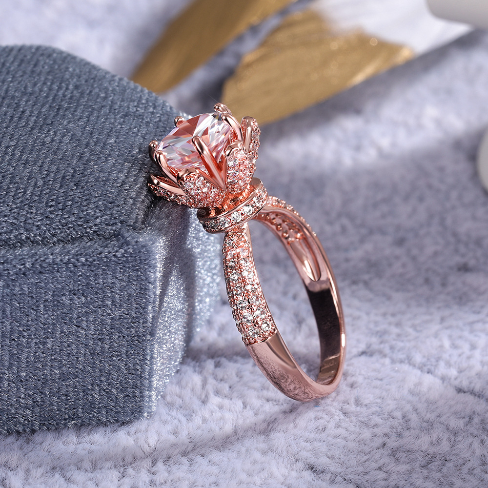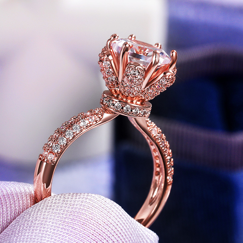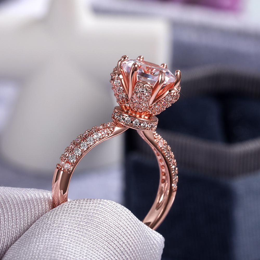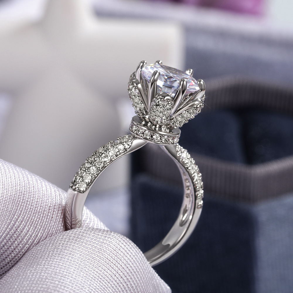 European and American new women's flower language imitation diamond wedding ring copper inlaid zircon wedding exchange ring jewelry hot sale