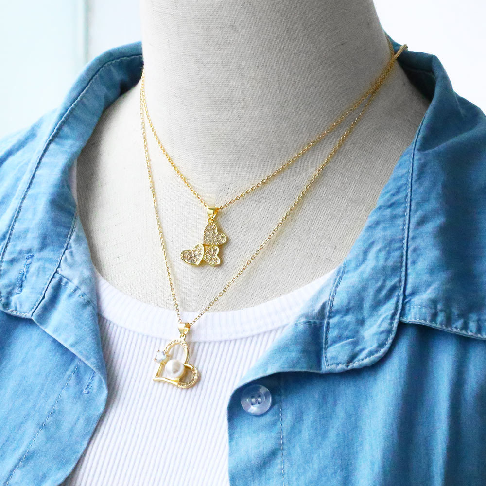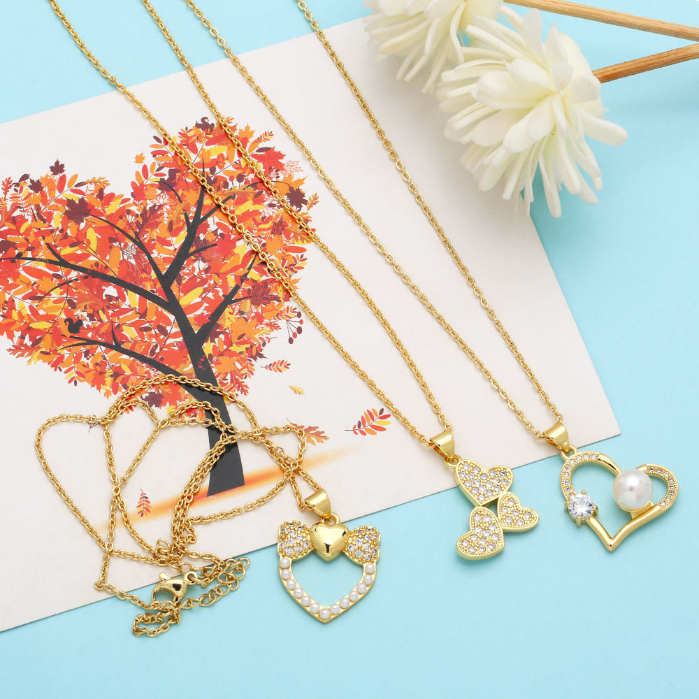 European and American niche design necklace female temperament simple bow heart pendant clavicle chain wholesale nkb749