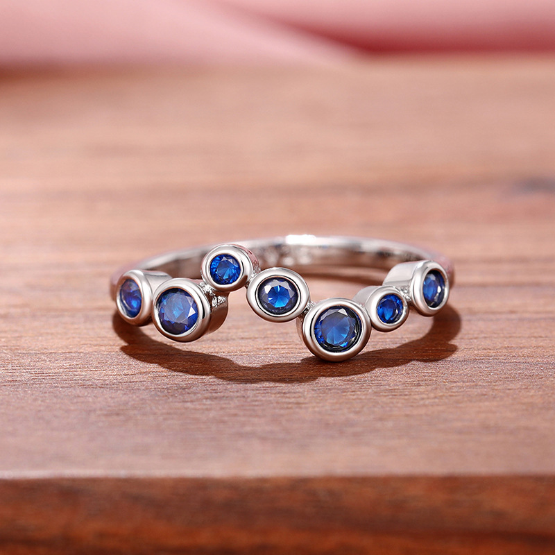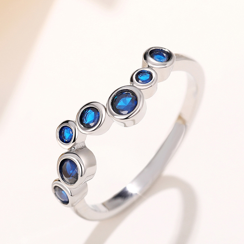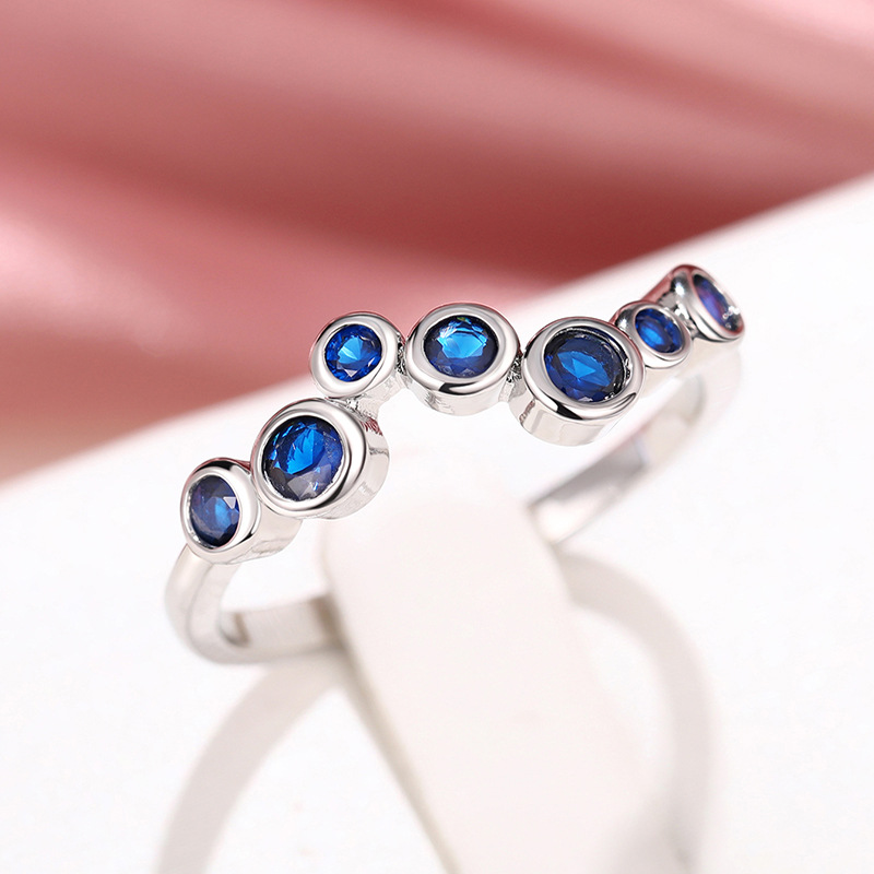 European and American niche design ring blue zircon irregular cold style ring bubble style ring