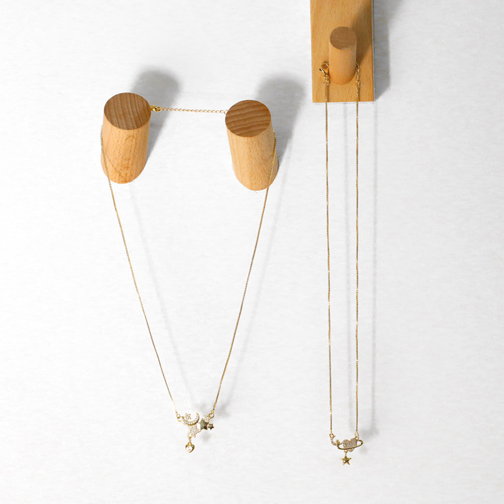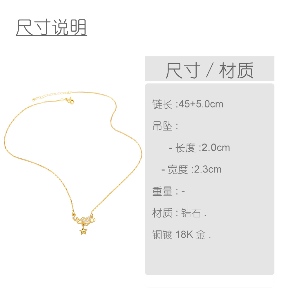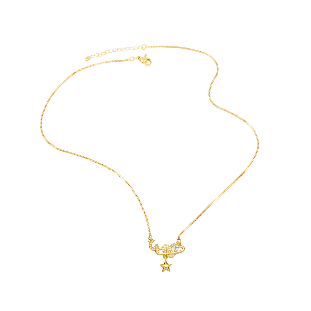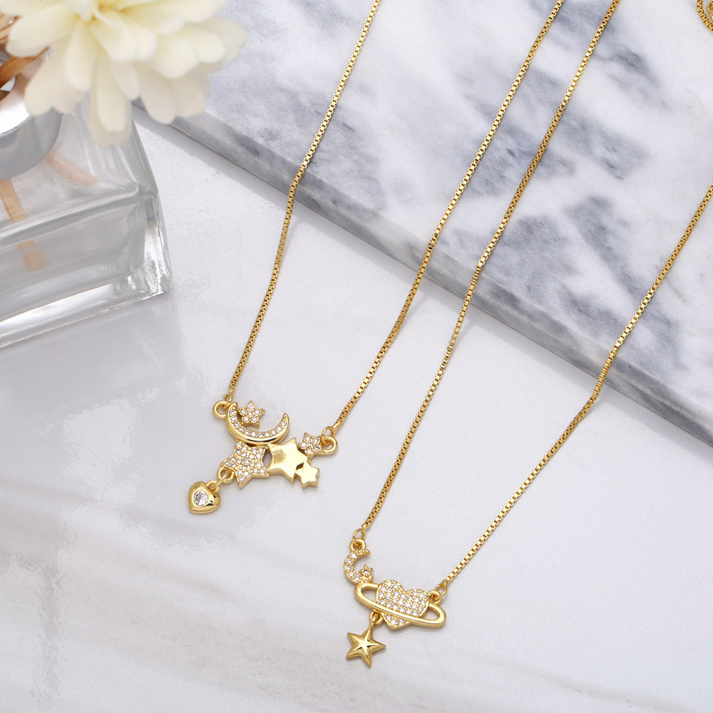 European and American niche design star moon clavicle necklace inlaid with diamond heart temperament simple light luxury necklace female nka049