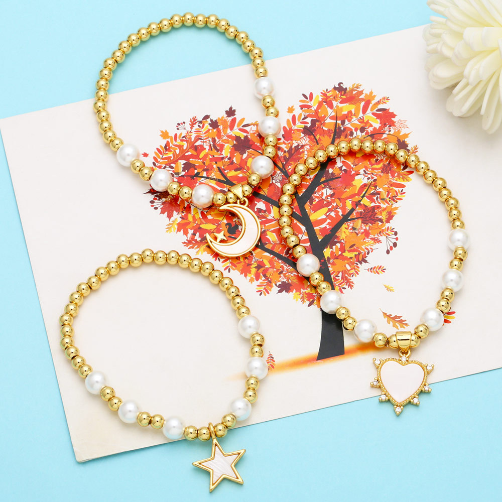 European and American niche pearl beaded bracelet style fashion French light star moon star love pendant bracelet brj80