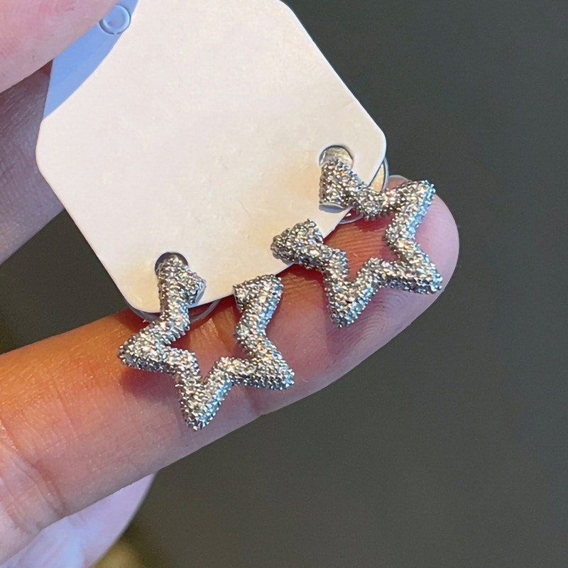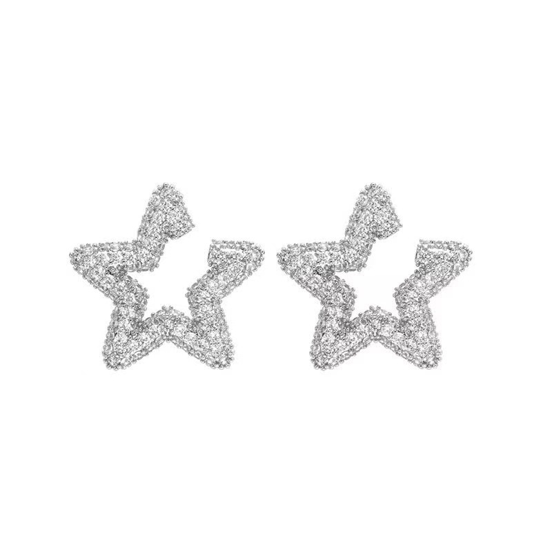 European and American open star design earrings for women, sparkling inlaid zircon earrings, daily wear earrings