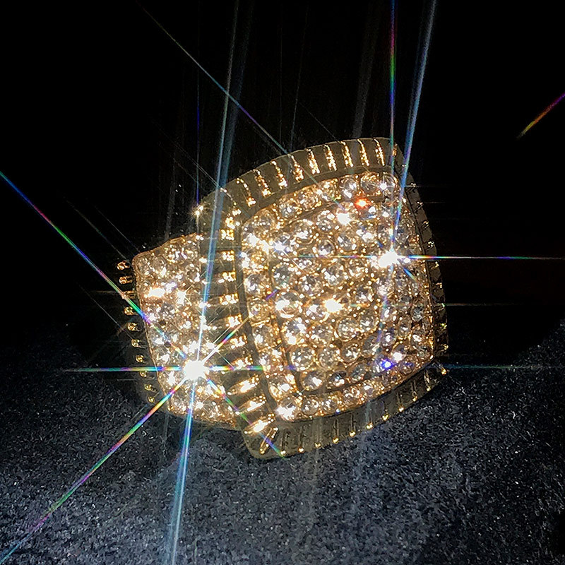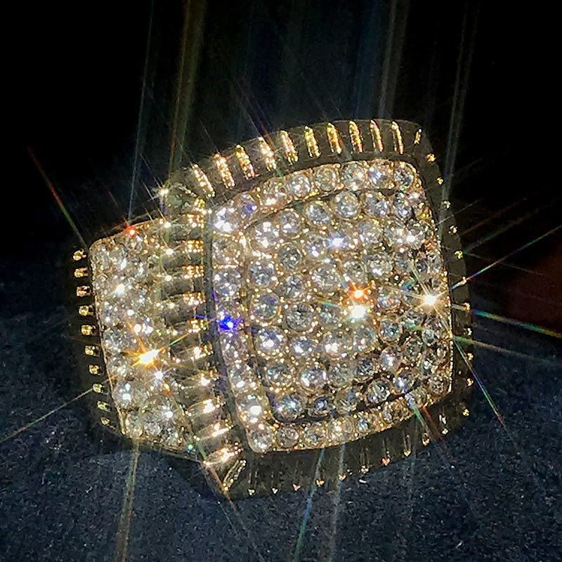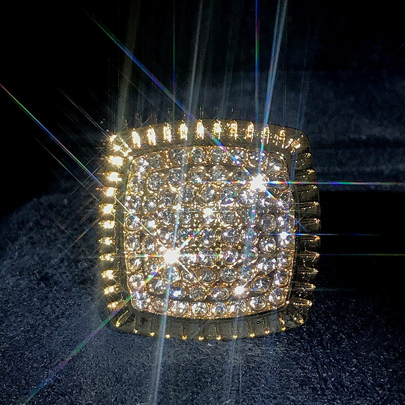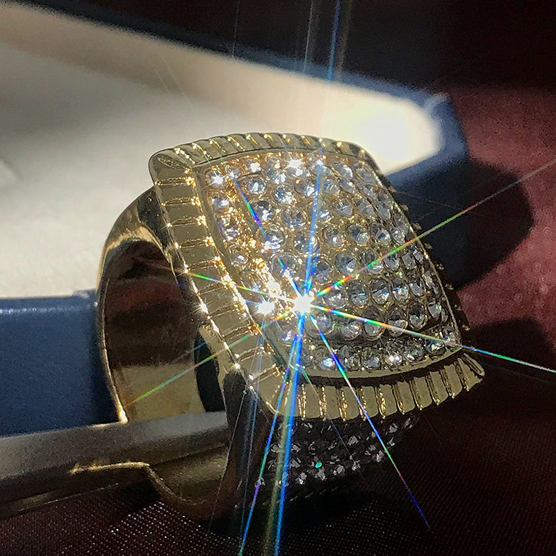 European and American oversized luxury ring for men, high-end hip-hop rhinestone jewelry