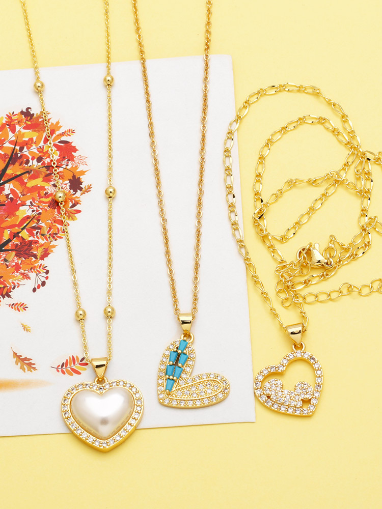 European and American pearl heart necklace female temperament versatile inlaid zircon gold-plated peach heart clavicle necklace jewelry nkb819
