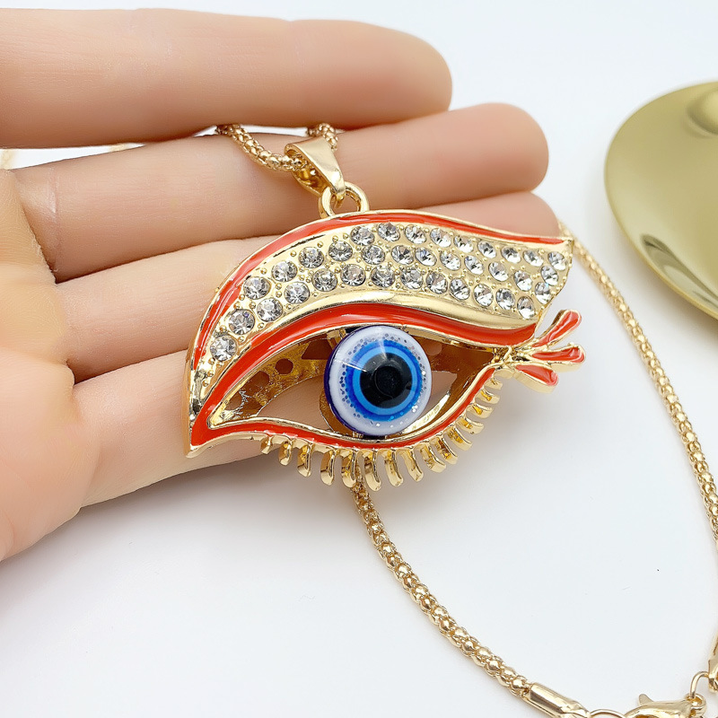 European and American personality color big eyes necklace female trend street shot rhinestone long eyelashes devil eye necklace nkt60