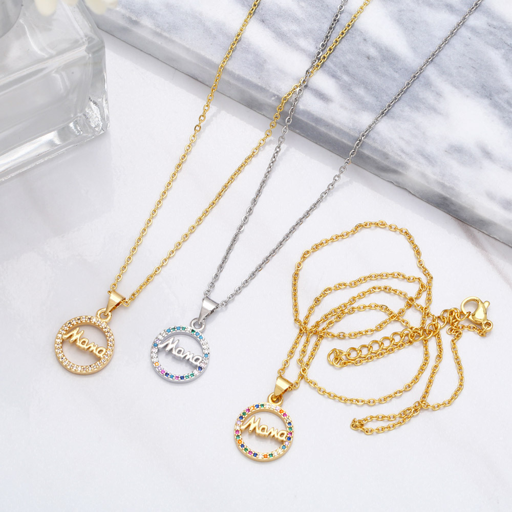 European and American personality color zircon jewelry fashion simple letter MAMA Mother's Day pendant necklace wholesale nkb175
