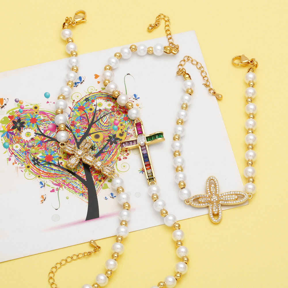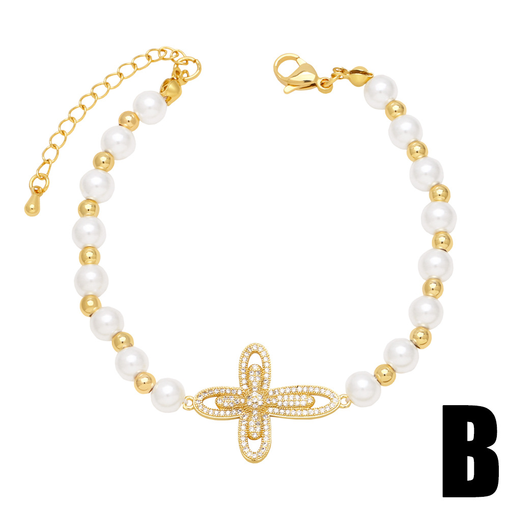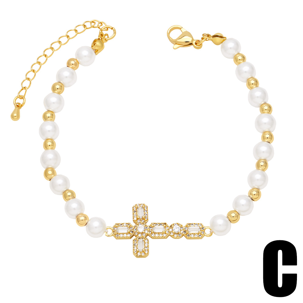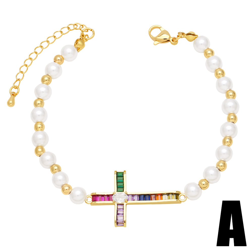 European and American personality cross pearl bracelet light luxury niche high-end beaded bracelet fashion jewelry brf70