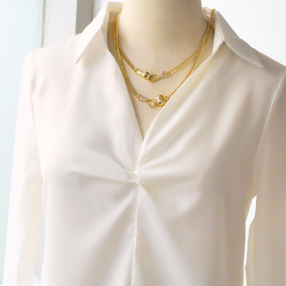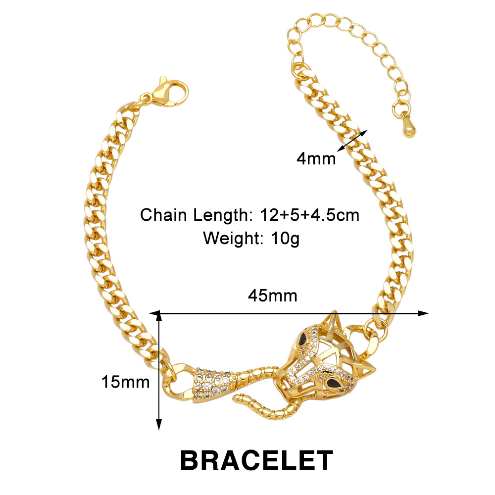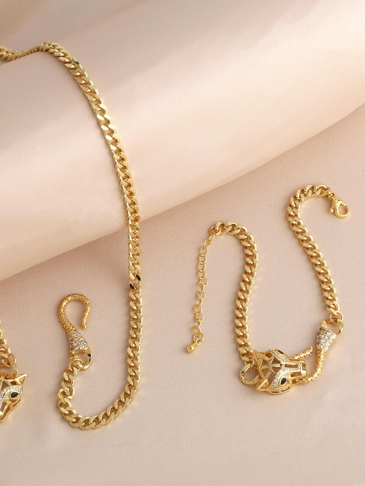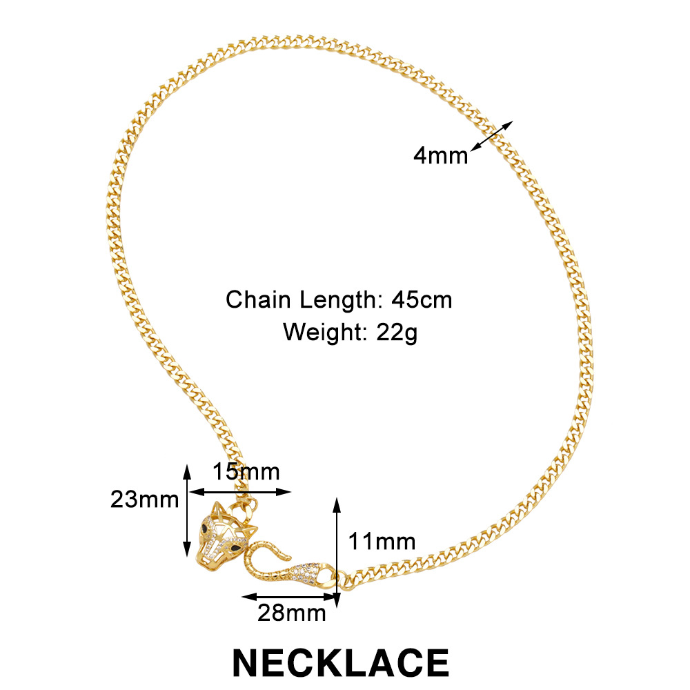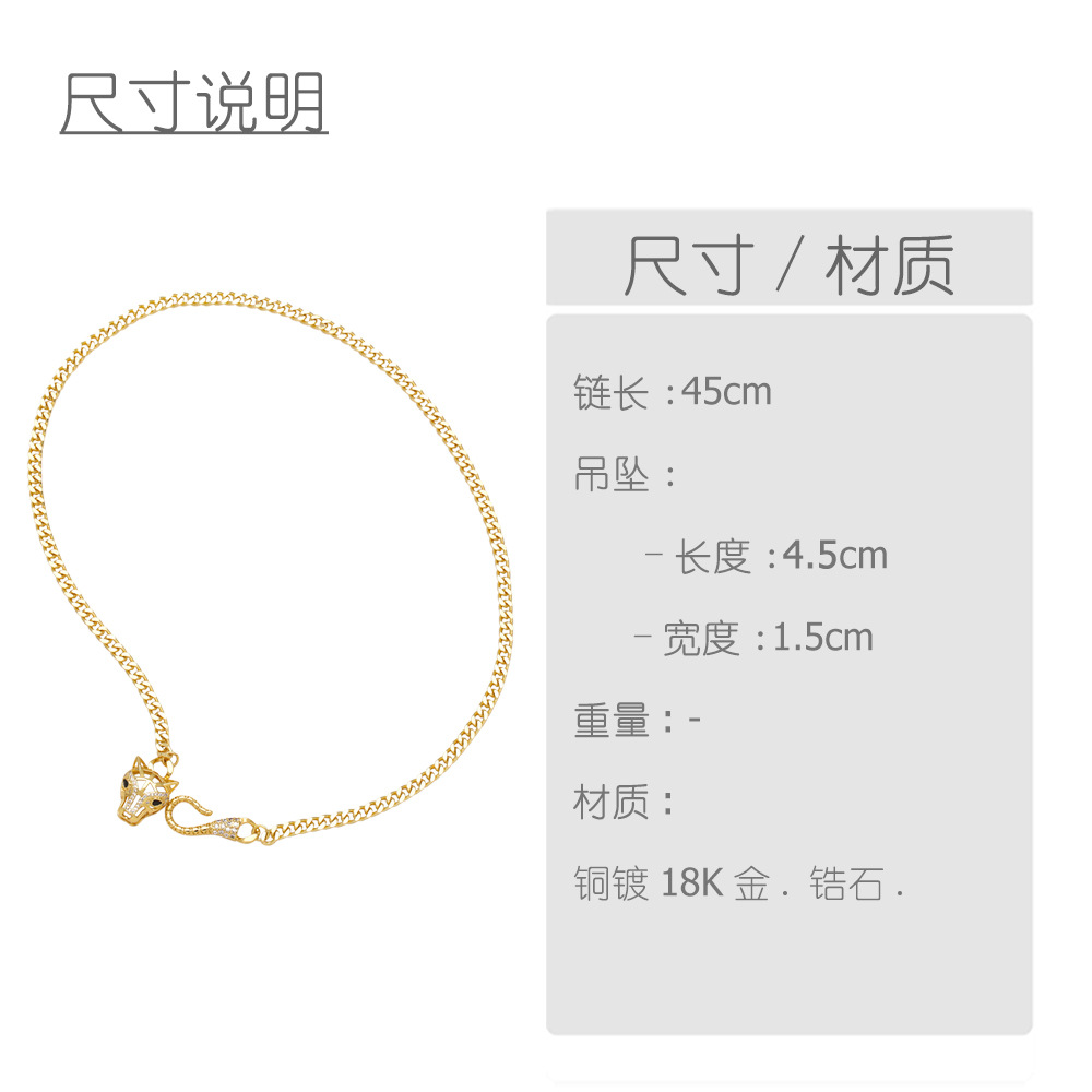European and American personality exaggerated high-end leopard head necklace Internet celebrity punk hip-hop Cuban chain handcuffs bracelet nkq66